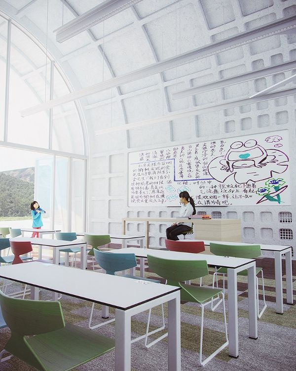 由扎哈?哈迪德事務(wù)所設(shè)計(jì)的廬山小學(xué),將會(huì)成為一個(gè)容納120學(xué)生的教學(xué)機(jī)構(gòu),該建筑位于中國江西省省會(huì)南昌市西北部160公里處。整個(gè)項(xiàng)目服務(wù)當(dāng)?shù)?800人口總數(shù)的12個(gè)村莊。由群山及柘林水庫供給的河道和湖水環(huán)繞,這所學(xué)校所在的農(nóng)業(yè)地區(qū)同時(shí)也具有悠久的盛產(chǎn)陶瓷的歷史傳統(tǒng)。