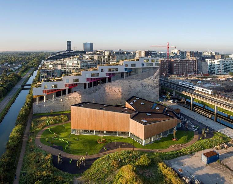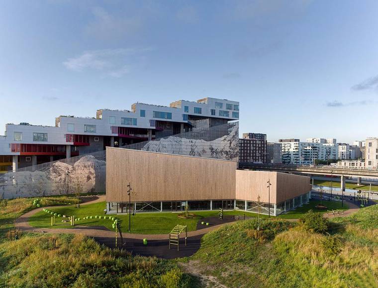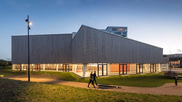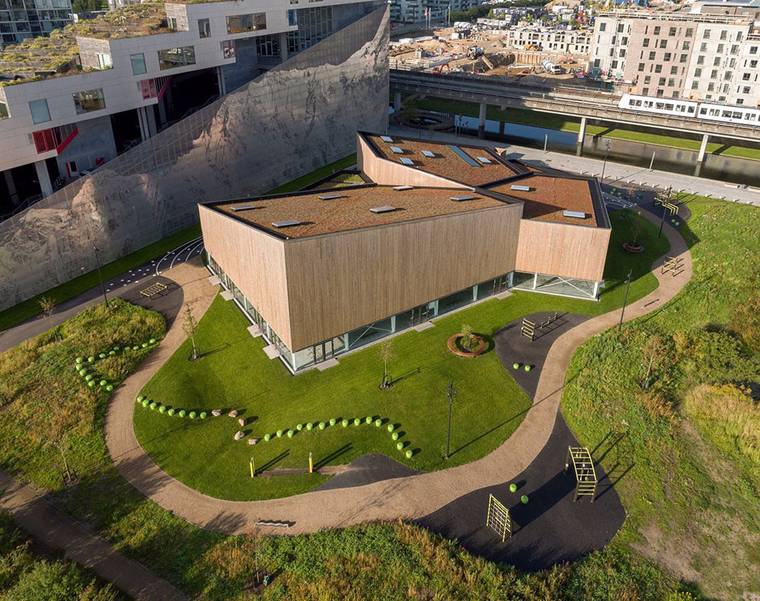丹麥工作室NORD Architects在哥本哈根的?restad市區(qū)完成了一座多功能體育中心。這座建筑向心布局,通過木材組成不同的功能區(qū),建筑位于BIG建筑事務(wù)所設(shè)計(jì)的山地住宅區(qū)內(nèi)。與BIG作品相比,由NORD Architects設(shè)計(jì)的體育中心相對低調(diào)許多,建筑基地原先計(jì)劃用于建造一座公園。“這座多功能建筑的定位是一個(gè)充滿活力的城市空間,它位于?resta市區(qū),周邊是林立的高樓和林蔭大道,促進(jìn)了社區(qū)及其可持續(xù)性的發(fā)展?!盢ORD Architects的合伙人Morten Gregersen說。建筑師與未來的使用者在一起進(jìn)行討論,確定了體育中心的最佳方案,使用者希望這座建筑空間靈活且實(shí)用。