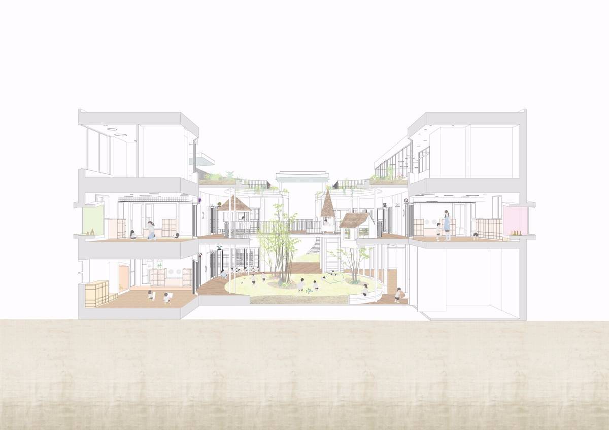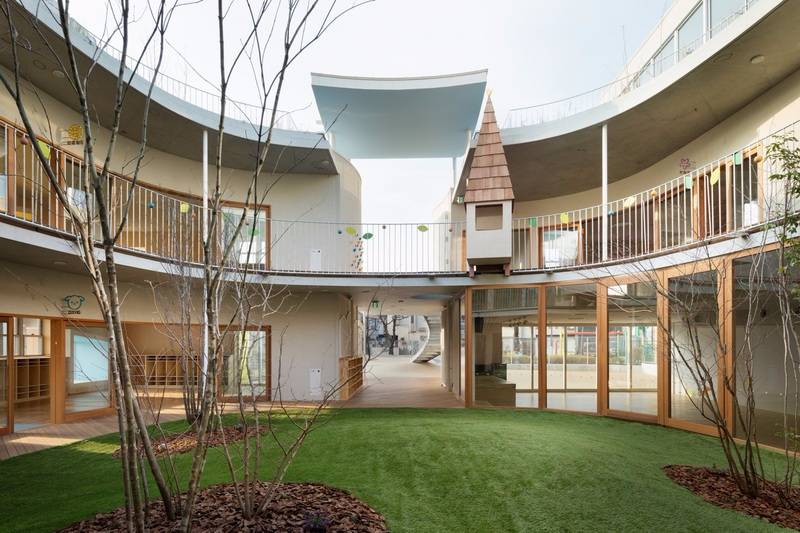 是一座位于東京荒川區(qū)的私立幼兒園,可容納175人。項目周圍工廠密集,建筑密度很高。來自MAMM DESIGN工作室的建筑師卻希望在這里建造一個花園式的建筑,無論你置身在任何位置,都可以感到到自然,以此讓孩子們的身心得到健康的成長。