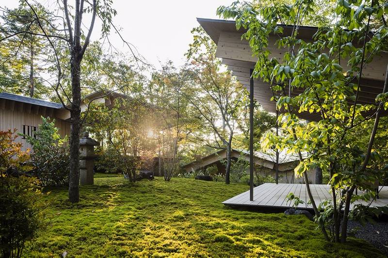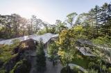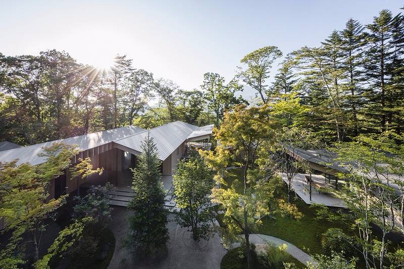 為了減少建筑對自然環(huán)境的影響,隈研吾事務(wù)所將建筑盡量劃分為若干小體塊。每個體塊的屋頂根據(jù)其所處的位置或打開或關(guān)閉,就像一群鳥兒拍打著的翅膀。