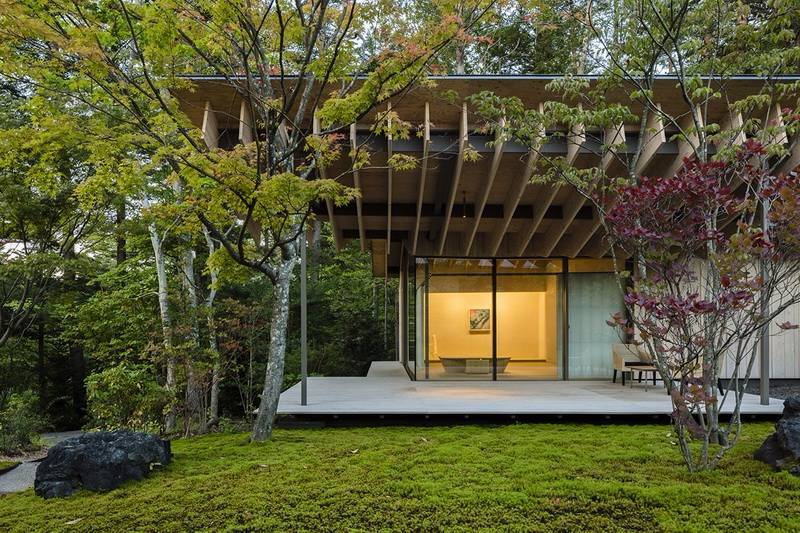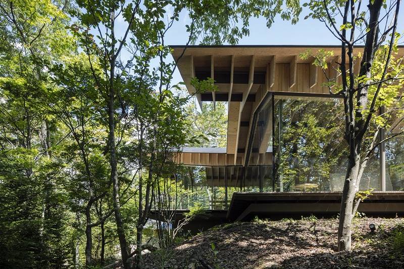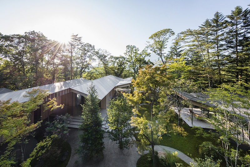 日本著名建筑設(shè)計(jì)團(tuán)隊(duì)——隈研吾建筑設(shè)計(jì)事務(wù)所(Kengo Kuma & Associates)在淺間山(Mount Asama)的林間坡地上設(shè)計(jì)了一處供藝術(shù)愛好者住宿的客房——Roof / Birds 。這里可以俯瞰山下,享受林間的鳥語花香。據(jù)說淺間山以其眾多的野生鳥類而聞名。
