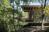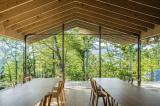 房子的首層盡量做得透明,屋頂?shù)闹芜x用了6.5厘米見方的實(shí)心鋼柱,這幾乎已達(dá)到極限,為的就是減小建筑的構(gòu)件尺寸,讓屋頂有一種飄在林間的錯覺。