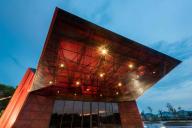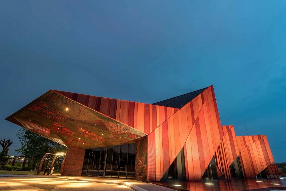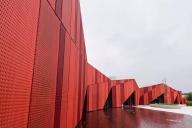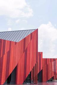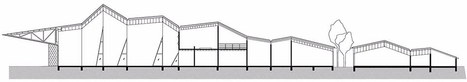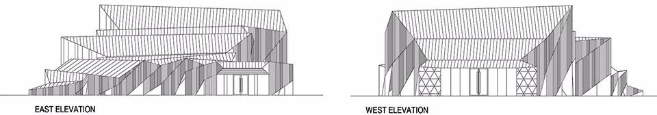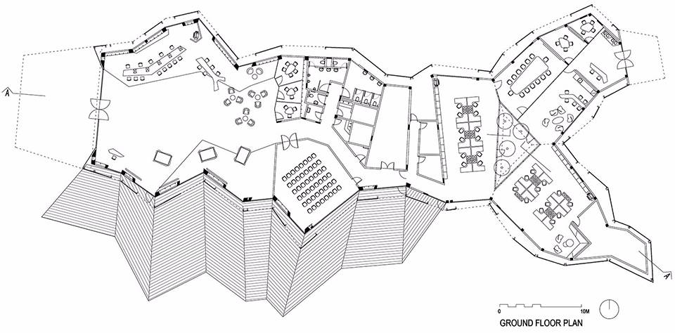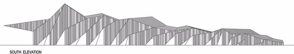 建筑的形態(tài)使人聯(lián)想到向著地面緩緩延伸下來的連綿起伏的山丘