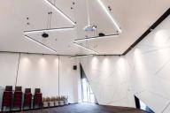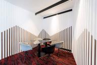 室內(nèi)空間的尺度根據(jù)不同的功能區(qū)域發(fā)生著明顯的變化。天花板在頭頂上不斷起伏,墻壁在不同的位置形成折疊,為室內(nèi)引入不同角度下的戶外視野。一條通往內(nèi)部花園庭院的曲折走廊成為整個(gè)旅程的一部分,它模仿了在森林中探尋目的地的體驗(yàn)。內(nèi)部庭院則是辦公區(qū)域的核心地帶。