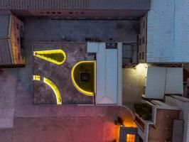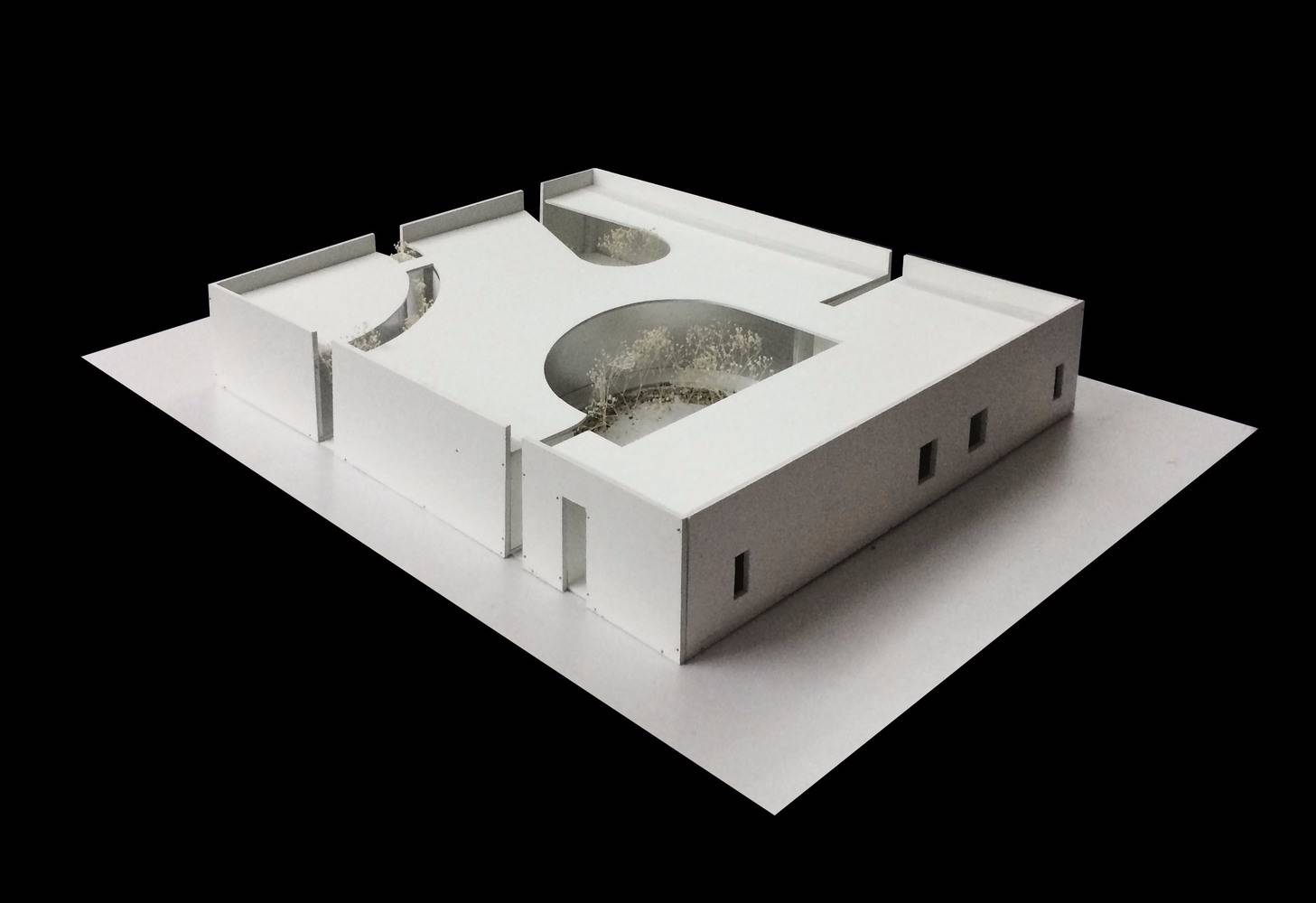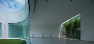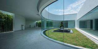 東南角環(huán)形院子為放映室創(chuàng)造了一面完整的弧墻,彎曲的開口給室內(nèi)帶來微妙柔和的光線,也為光潔的外墻創(chuàng)造出豐富的光影變化。