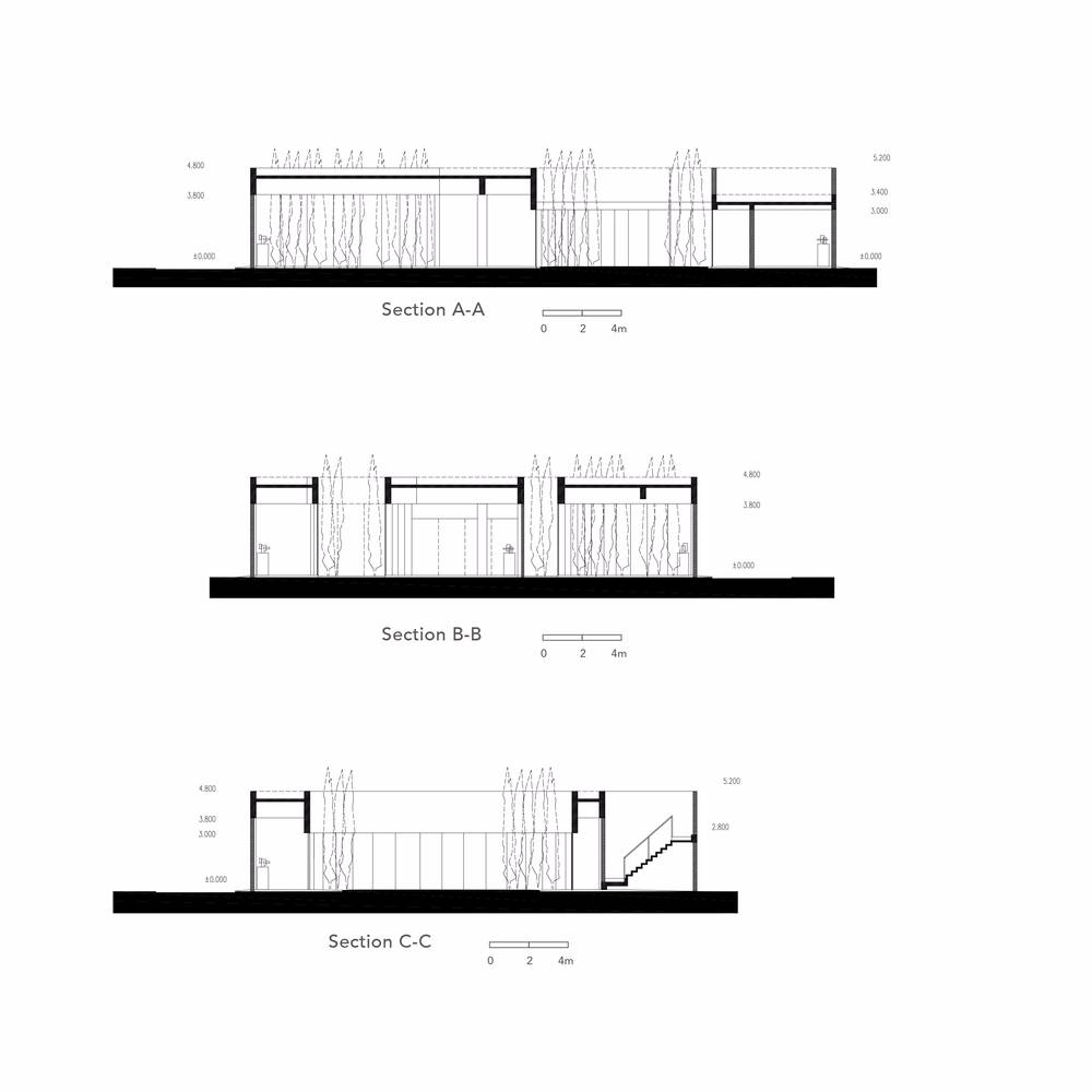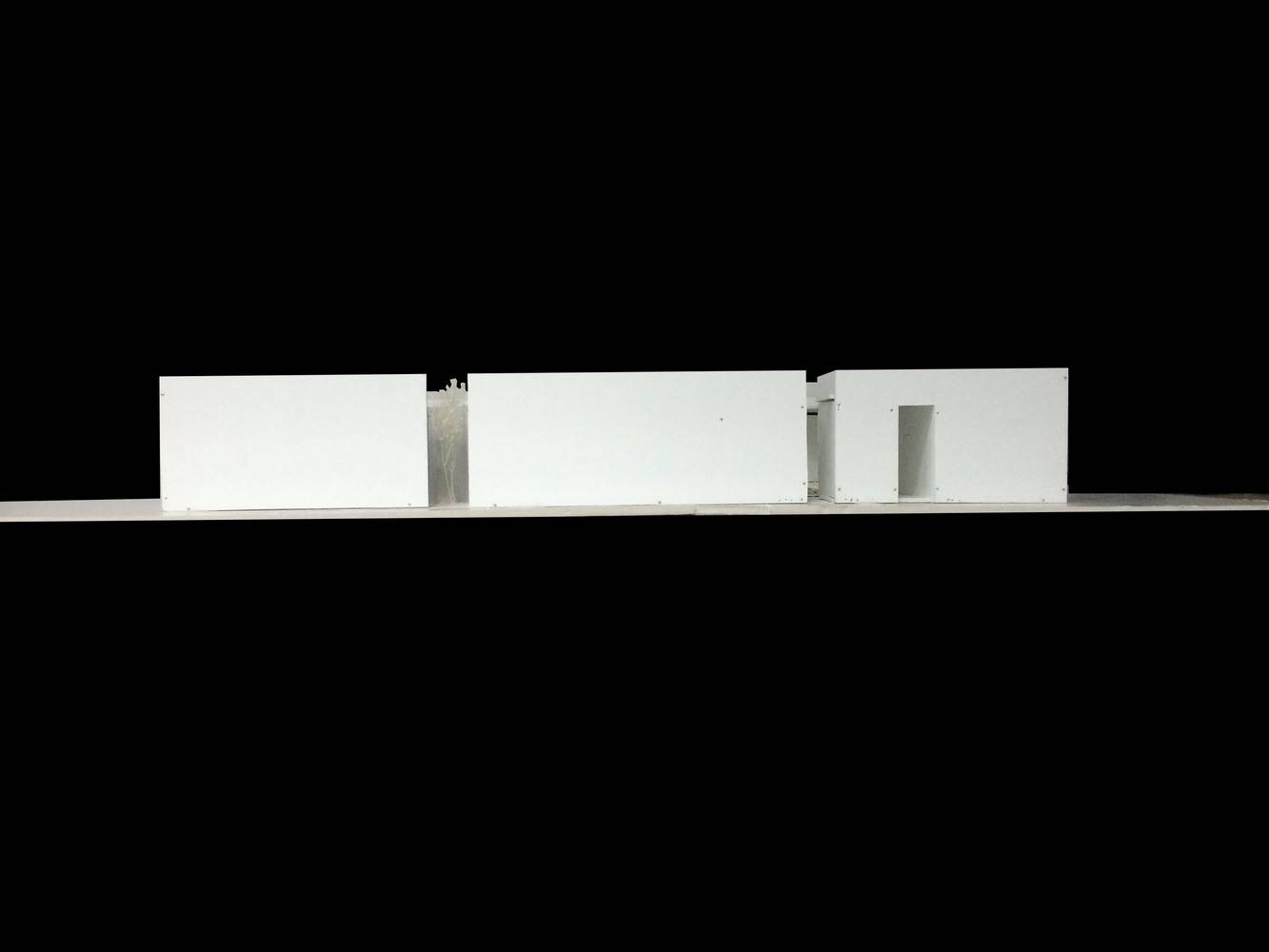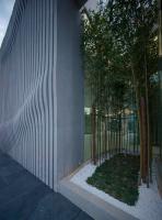 項(xiàng)目的造價(jià)預(yù)算不高,為了屏蔽場(chǎng)地周圍的不良因素,建筑師選擇了內(nèi)向化、小而精的基本策略。落成后的雕刻館呈簡(jiǎn)潔、完整的方形體量,精心設(shè)置的三條縫隙可以透過一絲視線,成為內(nèi)、外空間隱匿的關(guān)聯(lián)。