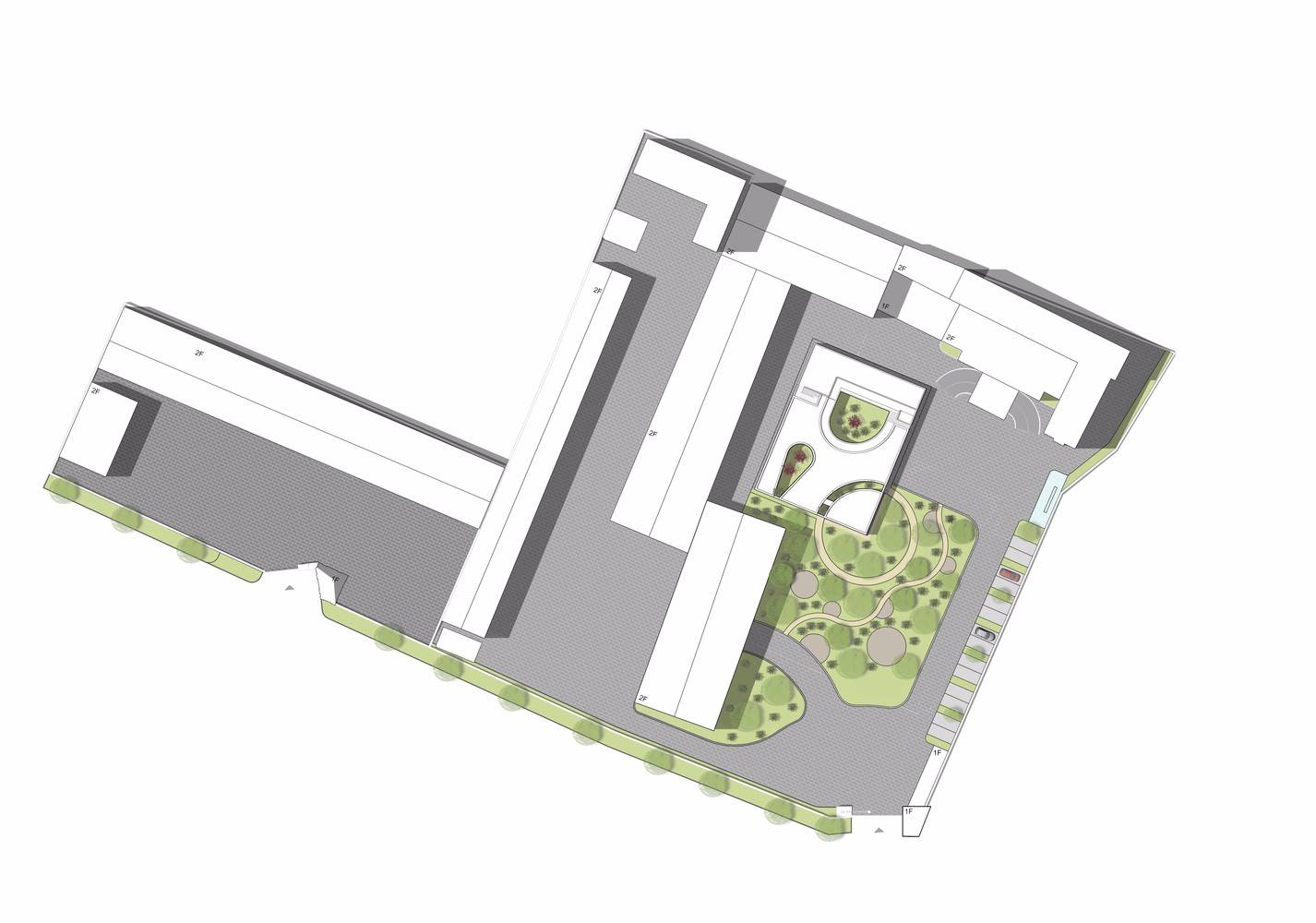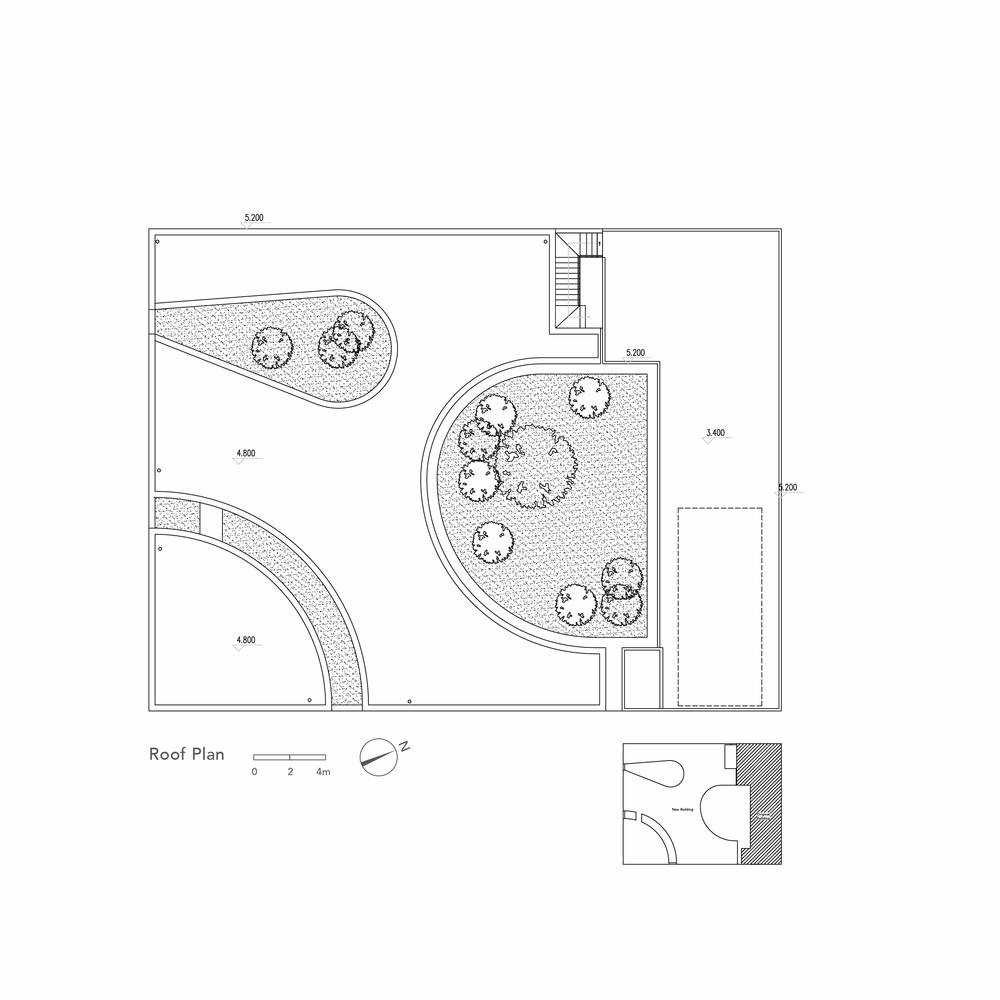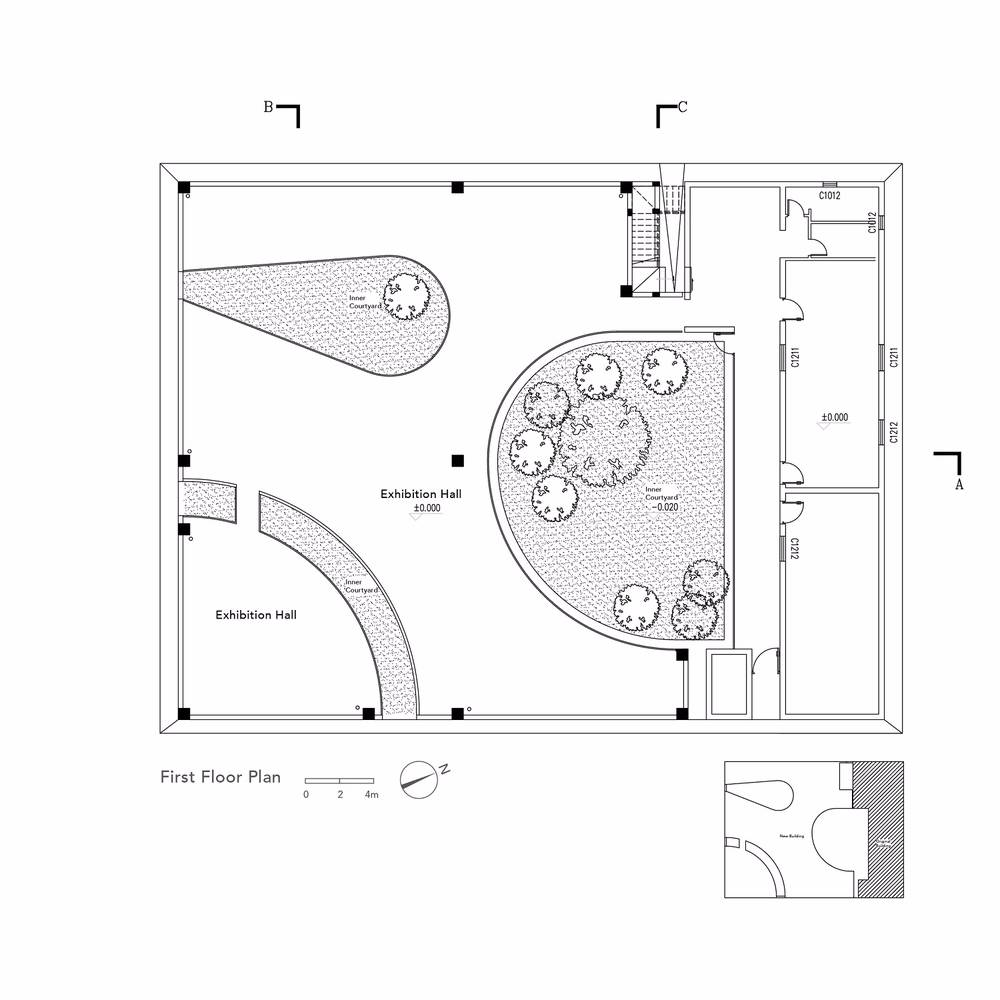 新舊建筑之間保留了各自的獨(dú)立結(jié)構(gòu),墻體間的縫隙暗示了中央D形院子,也承擔(dān)了沉降縫和內(nèi)院排水口的功能。