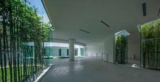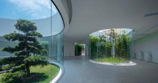 建筑師保留了滿載回憶的三間舊創(chuàng)作室,在老房子的南側(cè)擴(kuò)建了新館。通過庭院的置入,讓代表“過去”與“未來”的兩部分建筑圍合成完整的空間,連續(xù)的檐下空間引領(lǐng)觀者緩緩來到雕刻館入口,充滿生機(jī)的庭院成為時(shí)間與空間雙重關(guān)系的自然過渡,弱化了物質(zhì)上新與舊的對(duì)比。