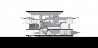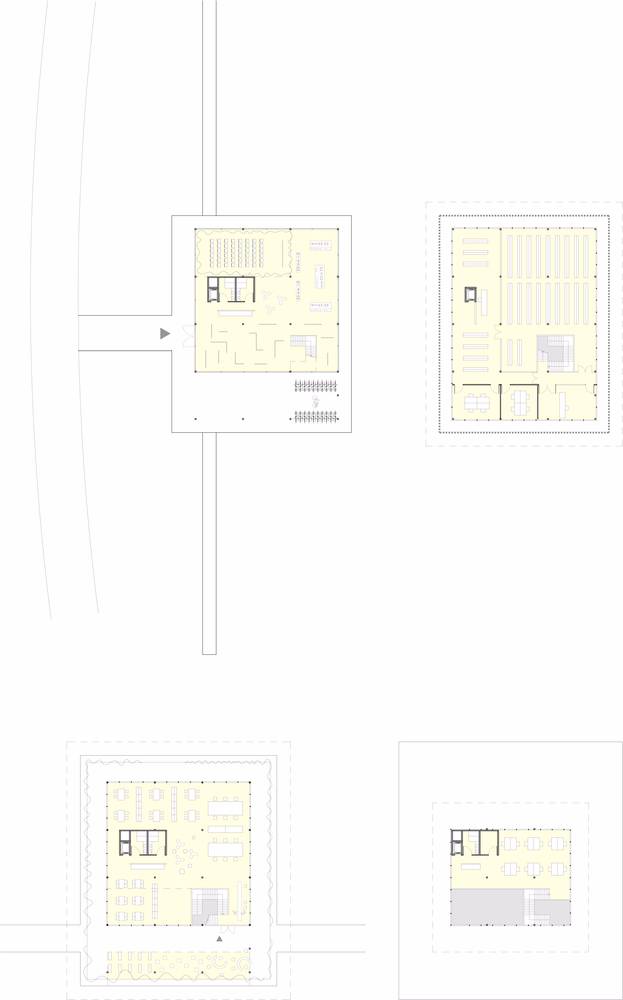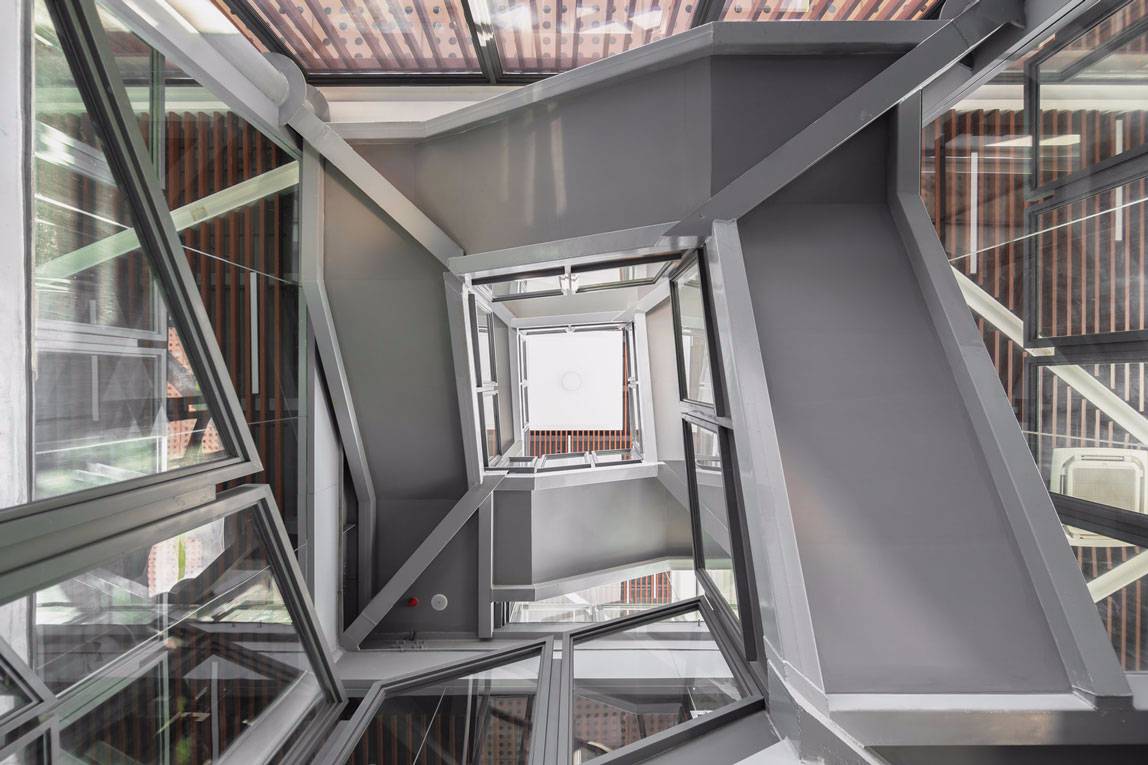 圖書館本身還起到了公共樓梯的作用,將地面層和橋梁層連接在一起。鑲嵌于林間的體量為每一層空間帶來不斷變化的景觀體驗。界線不甚清晰的首層空間成為樹林的一部分,與周圍環(huán)境融為一體。上方的樓層被茂密的樹冠圍繞,帶來親密的感覺。頂層享有周邊環(huán)境和城市的景致。體驗這座圖書館,就如同攀爬一座知識的大樹。