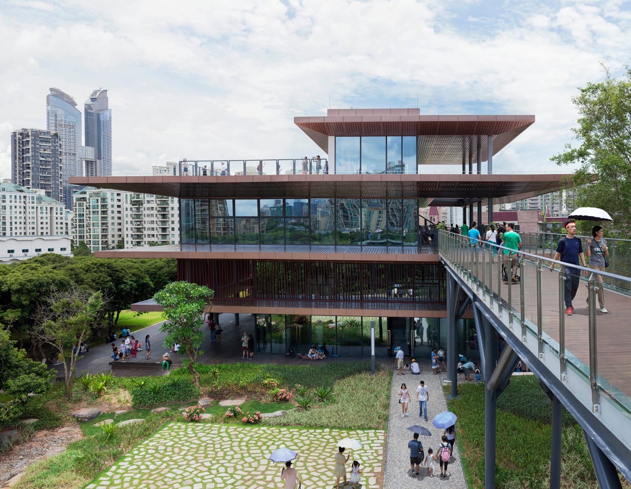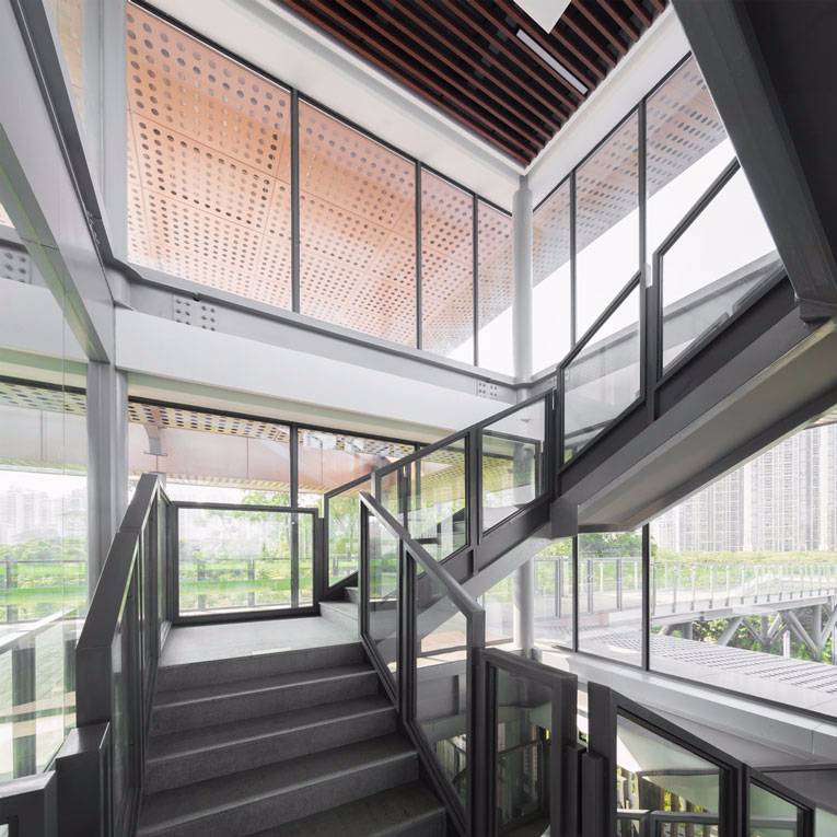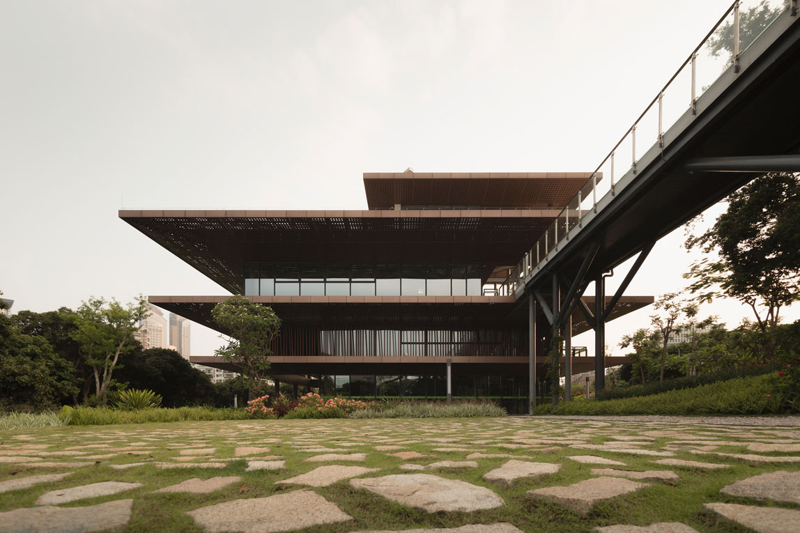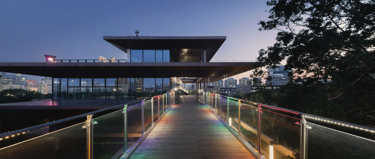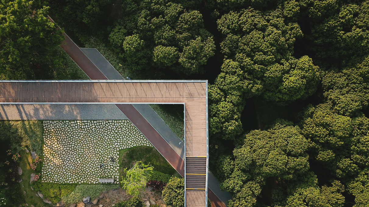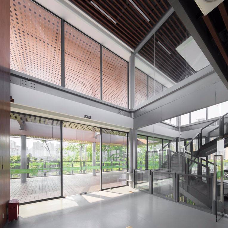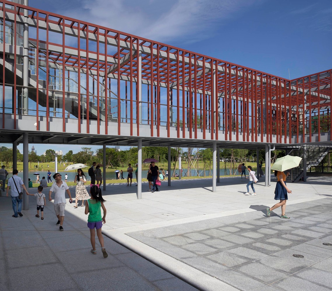 公園內的建筑物以多種方式與自然景觀融為一體。這些建筑并非以入侵者的姿態(tài)而存在,相反,它們揭示出了當?shù)刈匀画h(huán)境的本質,在延續(xù)中國園林建筑傳統(tǒng)的同時,也為現(xiàn)代化的開放式公園賦予了新的活力。