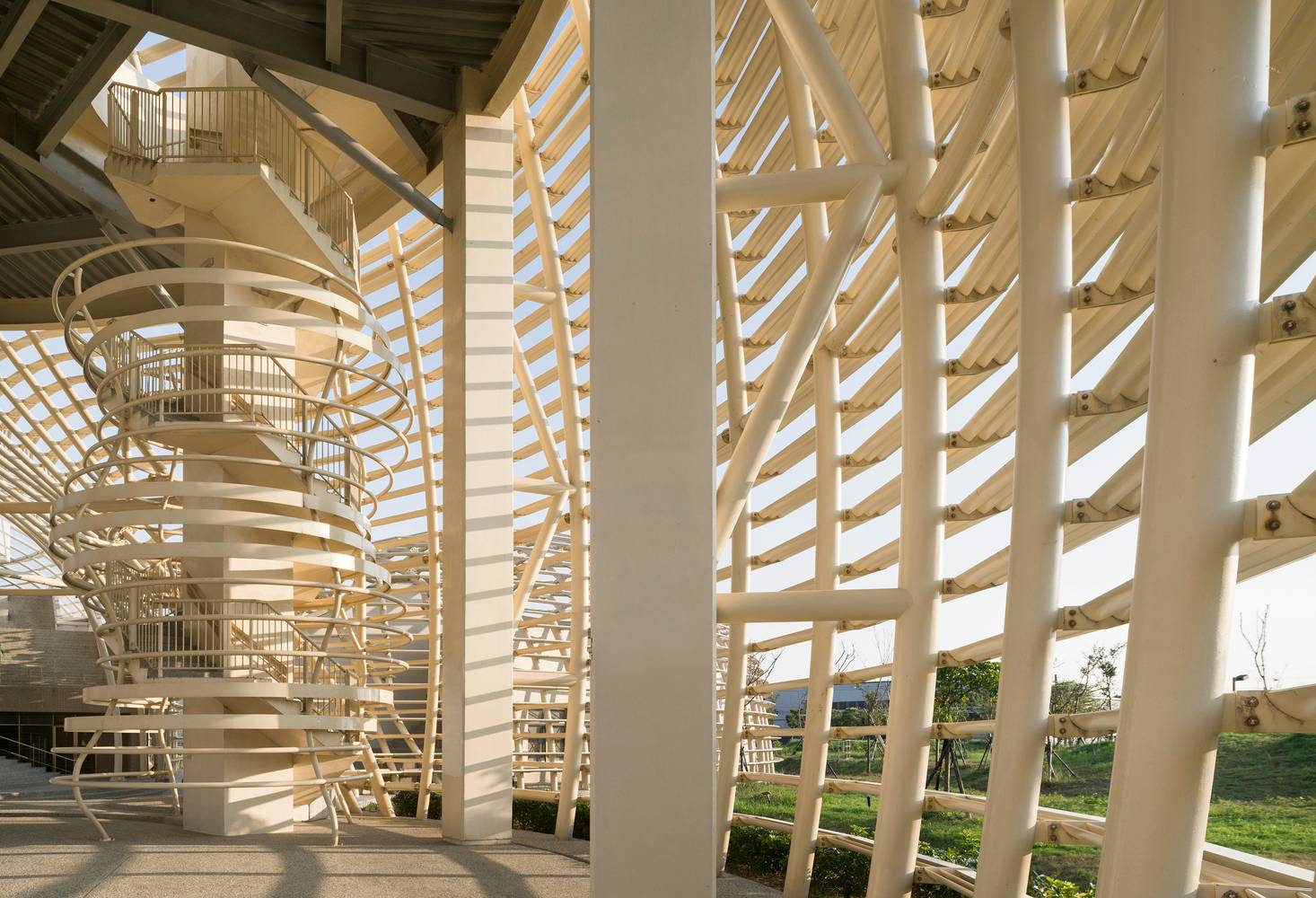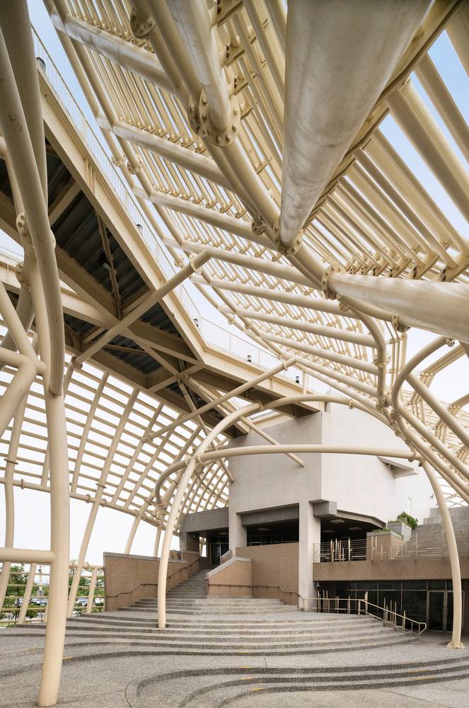 而這有空隙的皮層設(shè)計(jì)亦特別適應(yīng)桃園酷熱的氣候,不但阻隔日曬亦可引進(jìn)微風(fēng)而達(dá)自然降溫效果,此外更成為與自然生態(tài)、太陽(yáng)光影互動(dòng)的有趣介質(zhì)。