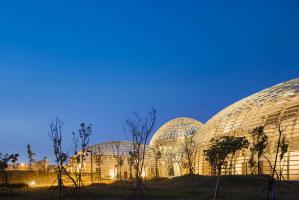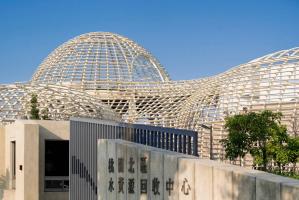 生態(tài)教育館的中心點(diǎn)設(shè)計(jì)成污水處理后之凈化水池,而有空隙的格柵所圍塑而成的山穹空間就成為花、鳥(niǎo)、陽(yáng)光、水、微風(fēng)、雨在此交織互動(dòng)的最佳生態(tài)教育體驗(yàn)空間。