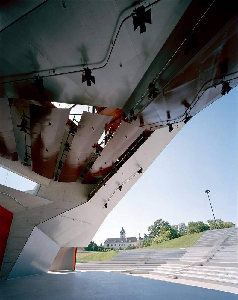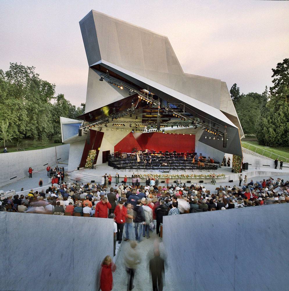 2005年5月,next ENTERprise和景觀設(shè)計(jì)師團(tuán)隊(duì)在 Sicht 贏得了對(duì)歷史公園和露天展館進(jìn)行當(dāng)代改造的競(jìng)賽。展館被設(shè)計(jì)成一個(gè)地標(biāo)性建筑,是公園的一個(gè)吸引人的地方,也是夏季節(jié)日期間古典音樂(lè)的表演空間。