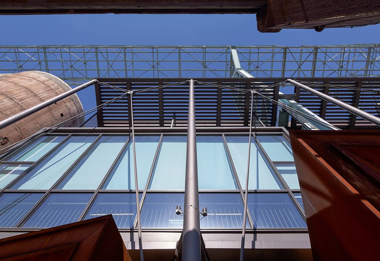料斗展廳是另一個(gè)比較遺憾的部分,因?yàn)槟承┱龟悓<覍?duì)于展廳“寬敞通透”的意見(jiàn),已經(jīng)施工的七個(gè)料斗被拆掉了六個(gè),徹底面目全非。一句普世價(jià)值的“標(biāo)準(zhǔn)”剝奪了一個(gè)具有唯一性的工業(yè)展廳的價(jià)值,這讓我們充分認(rèn)識(shí)到在重塑工業(yè)遺存的審美道路上還有很長(zhǎng)的路要走。