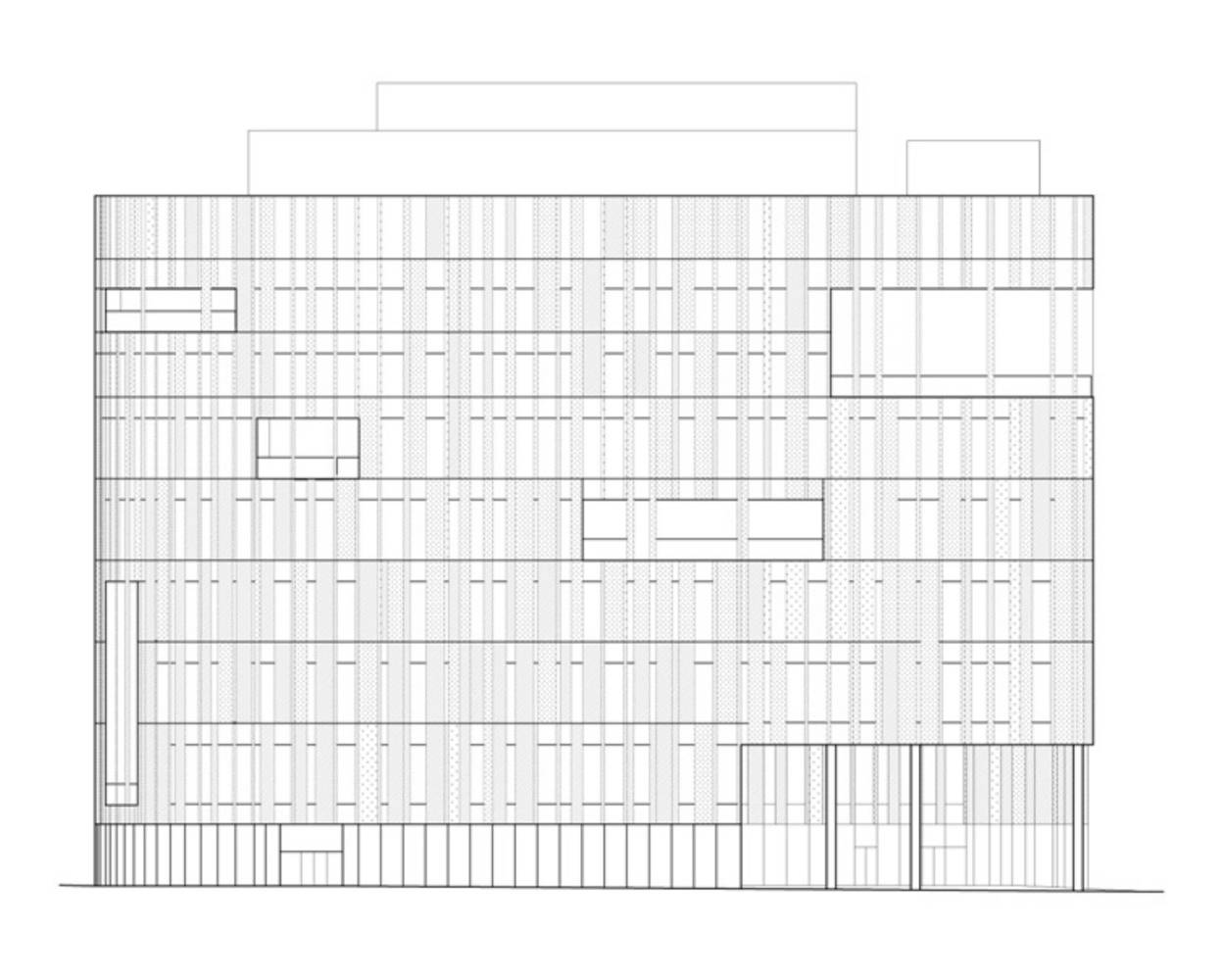 在建筑的中心有一個對角斜插的空隙,在空間內(nèi)有效地分配了來自南方的自然光,并有助于將三個主要功能空間連接在一起。虛空間的四周以當(dāng)?shù)厣a(chǎn)的實心雪松板作為飾面,營造出溫馨友好的氛圍,這部分空間也是名副其實的社區(qū)中心。