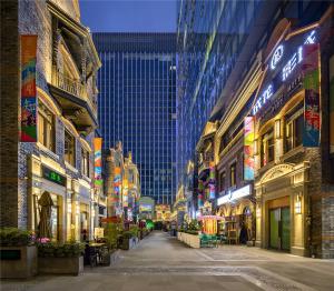 與公館商業(yè)區(qū)相連的,是百米寫(xiě)字樓JIC佳辰國(guó)際中心和凱悅Hyatt集團(tuán)旗下酒店。兩棟高層板樓,呈L形布置,為底層商業(yè)形成一個(gè)半圍合半開(kāi)放的空間,結(jié)合建筑本身高低錯(cuò)落的的空間特點(diǎn),營(yíng)造時(shí)空交錯(cuò)、富有戲劇感的商業(yè)體驗(yàn)。