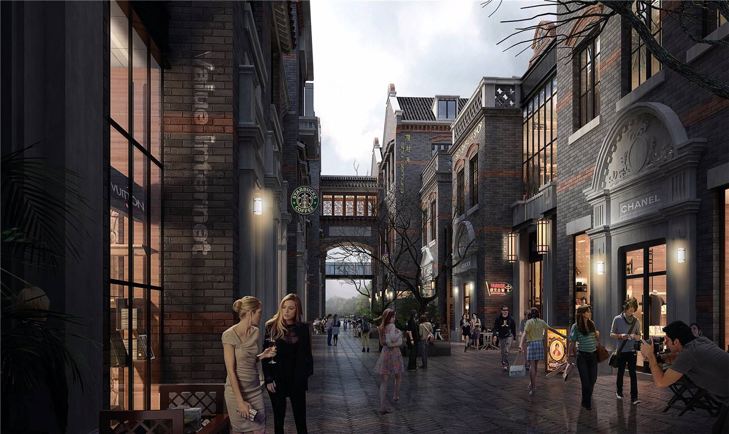 建筑設(shè)計(jì): 公館商業(yè)以上海石庫(kù)門(mén)建筑風(fēng)格為基調(diào),結(jié)合中西傳統(tǒng)樣式建筑,再現(xiàn)中國(guó)20世紀(jì)20、30年代的民國(guó)風(fēng)情。建筑外立面的建筑肌理是以青磚或紅磚為主的清水磚墻,以石頭做門(mén)框,以烏漆實(shí)心厚木做門(mén)扇,外墻細(xì)部有西洋建筑的雕花圖案,門(mén)上的三角形或圓弧形門(mén)頭裝飾也多為西式圖案。