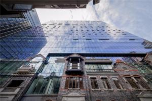 辦公與酒店的立面設(shè)計(jì)以現(xiàn)代建筑風(fēng)格為主,通過(guò)玻璃幕墻與豎向鋁合金桿件形成一虛一實(shí)的對(duì)比,富有現(xiàn)代氣息。這種現(xiàn)代建筑風(fēng)格與商業(yè)的古典建筑風(fēng)格形成強(qiáng)烈的對(duì)比,凸顯了商業(yè)的歷史感和厚重感。高層的裙房部分與公館商業(yè)相呼應(yīng),通過(guò)新舊結(jié)合的方式體現(xiàn)出建筑的時(shí)尚感。