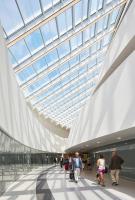 主大廳朝向設(shè)置有利于建筑的生態(tài)可持續(xù)性。屋頂安裝有集成太陽(yáng)能電池板,結(jié)合自然光和通風(fēng)以及地源冷卻及加熱系統(tǒng),有助于該車站將能耗降到最低。