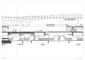 該建筑的設(shè)計(jì)初衷是創(chuàng)建一座城市化的公共橋梁,將鐵路兩側(cè)的社區(qū)彼此鏈接,車站根據(jù)乘客的流通路線進(jìn)行限定,盡量減少來(lái)此上下車的乘客的步行距離,同時(shí)簡(jiǎn)化前往其他火車線路的路徑。