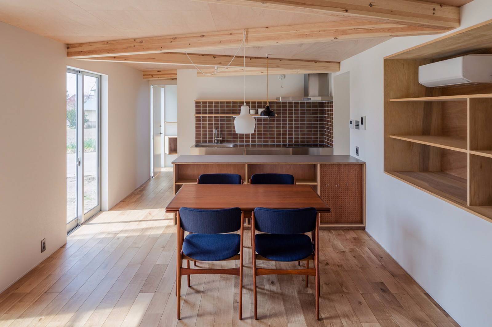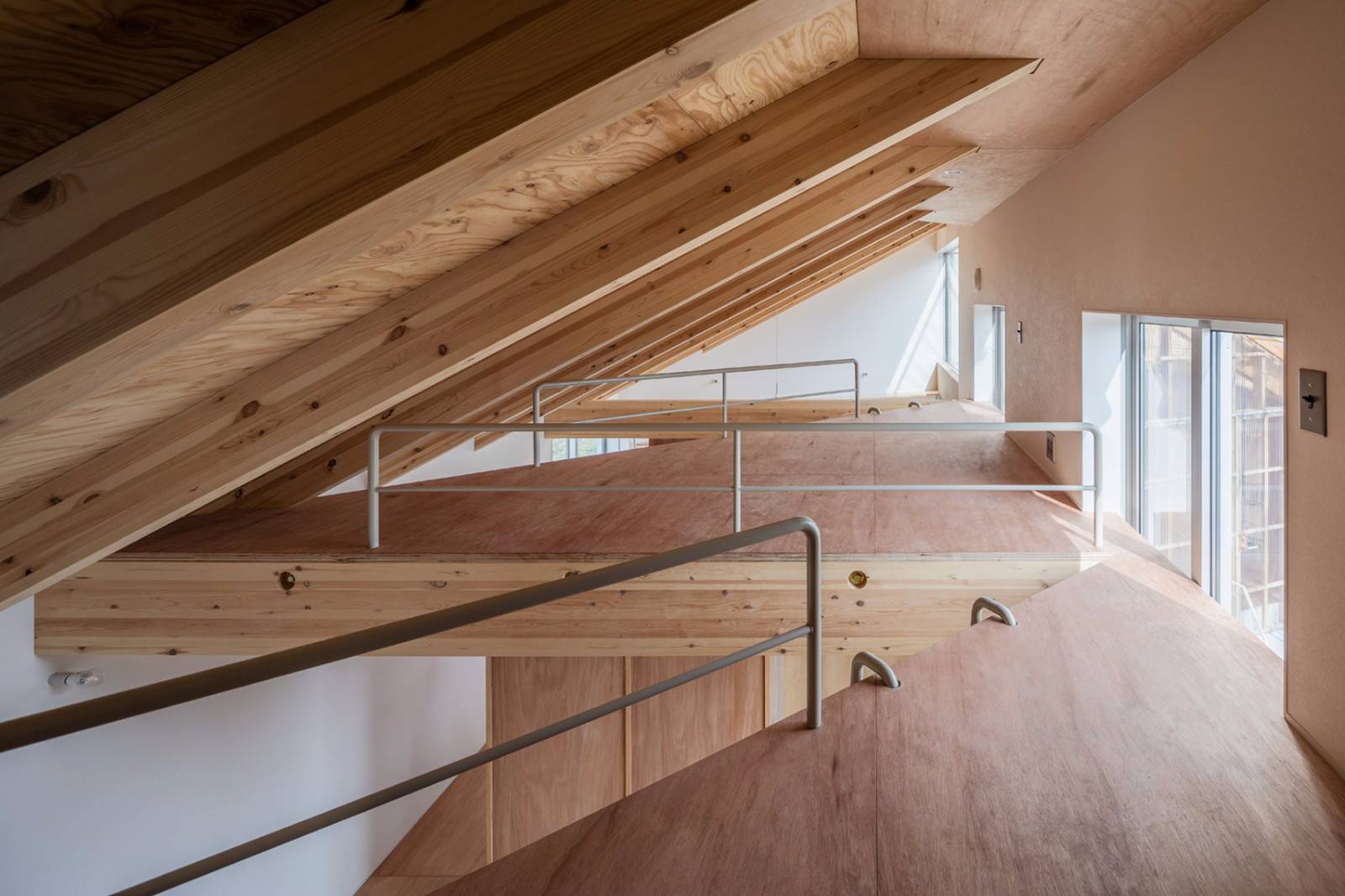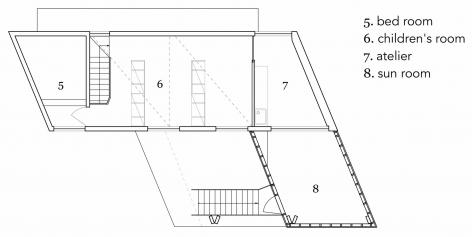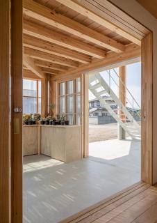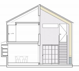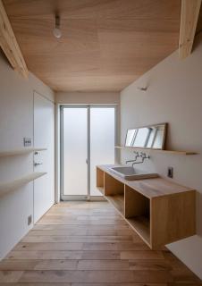 Snark的其他住宅項目作品包括一個狹窄的房子和一個不平衡的屋頂,以及金澤插畫家的房子等都有外露的木梁支撐著一樓的夾層樓。