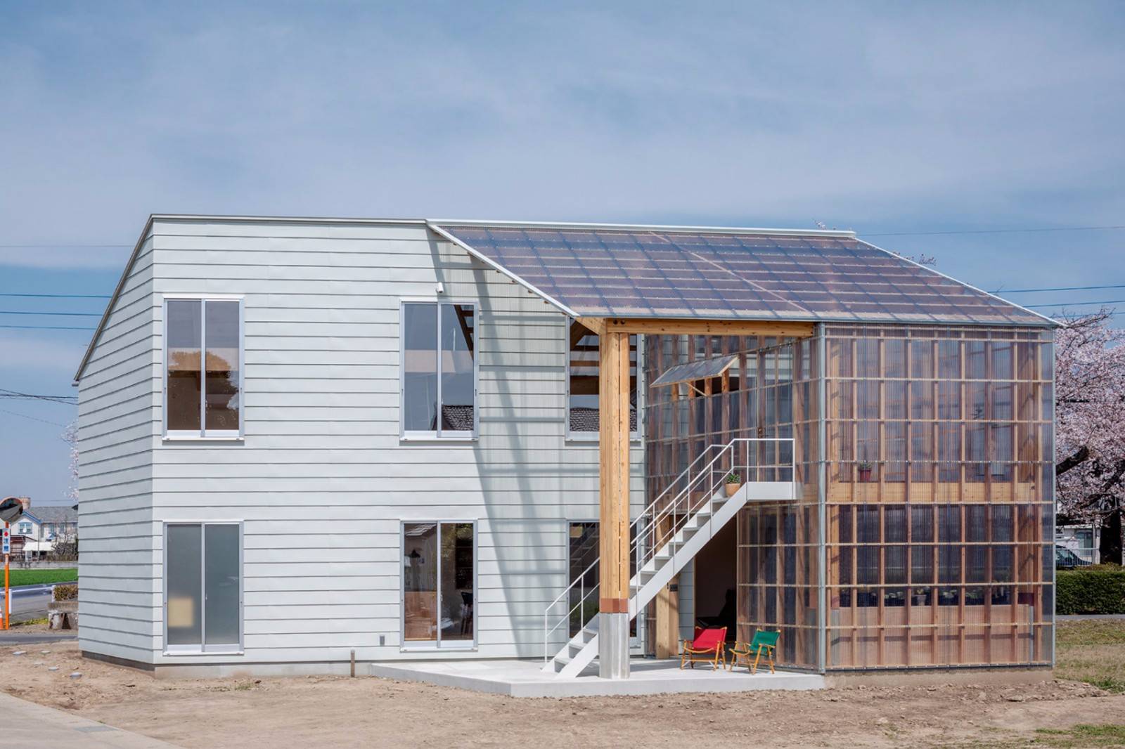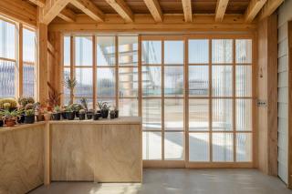 這座兩層高的木結構建筑采用了一系列低成本材料建造而成,這些材料參考了周邊當地地區(qū)的小型谷倉。結構采用木框架連接兩個不同的部分,便于陽光房部分的直接調整。