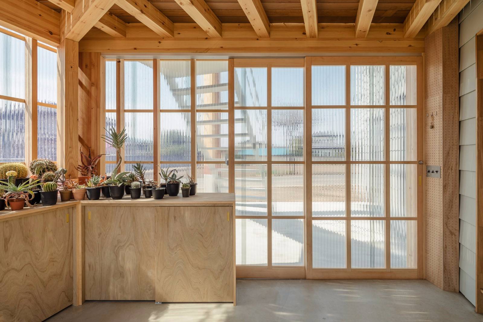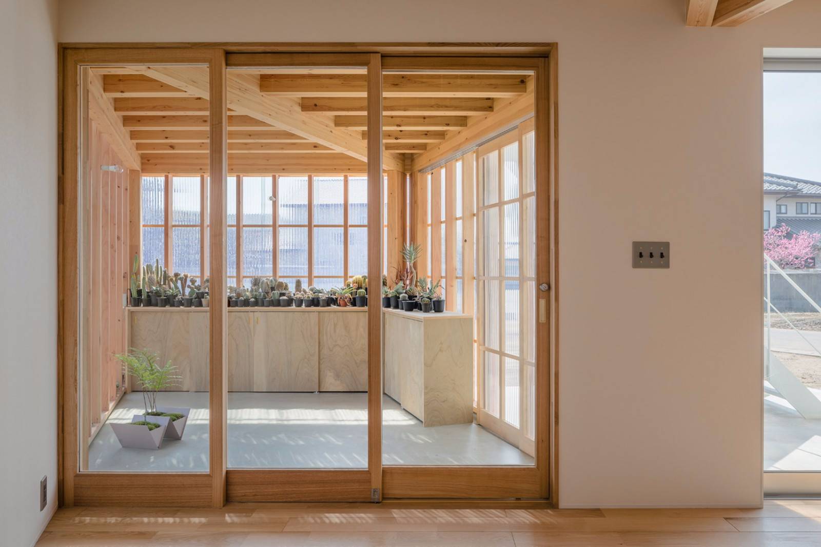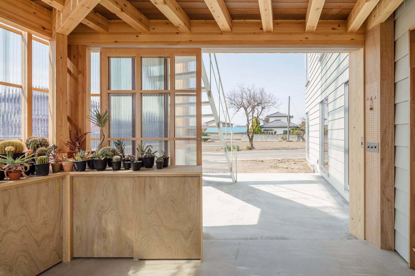 建筑工作室Snark在日本前橋(Maebashi)建造了這所住宅,其中包括一個日光浴室,用于業(yè)主種植植物的愛好所用。