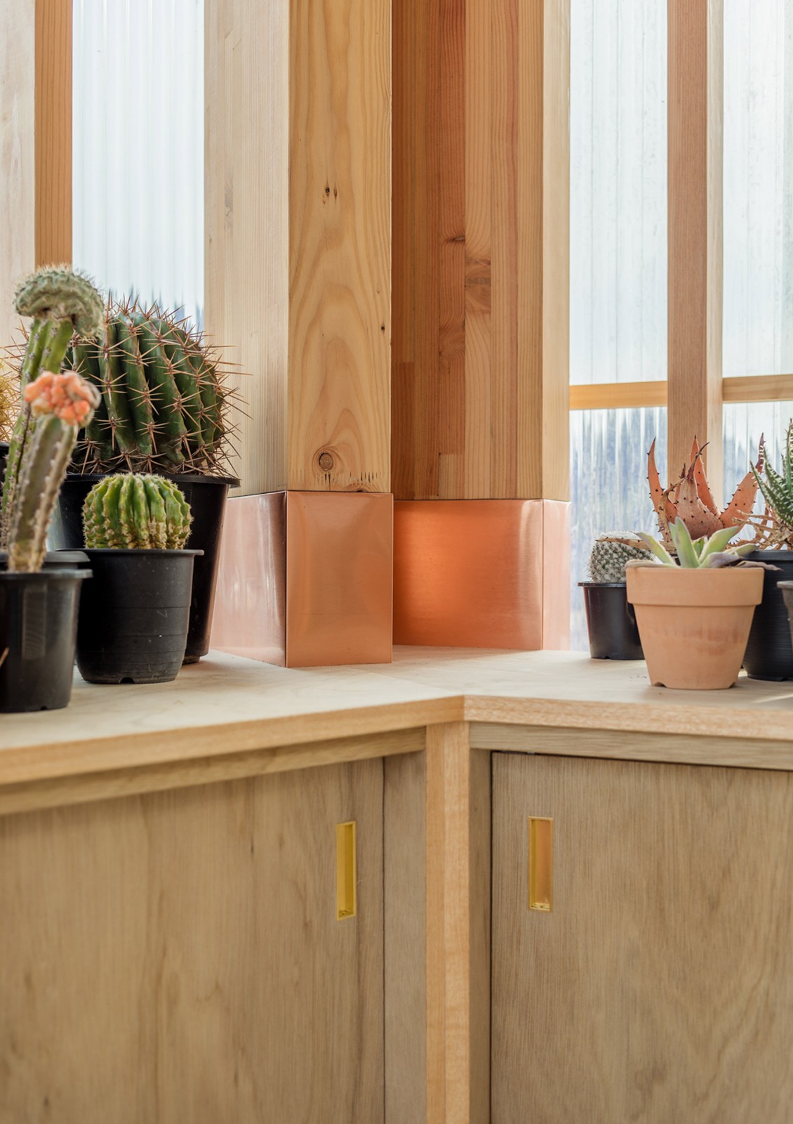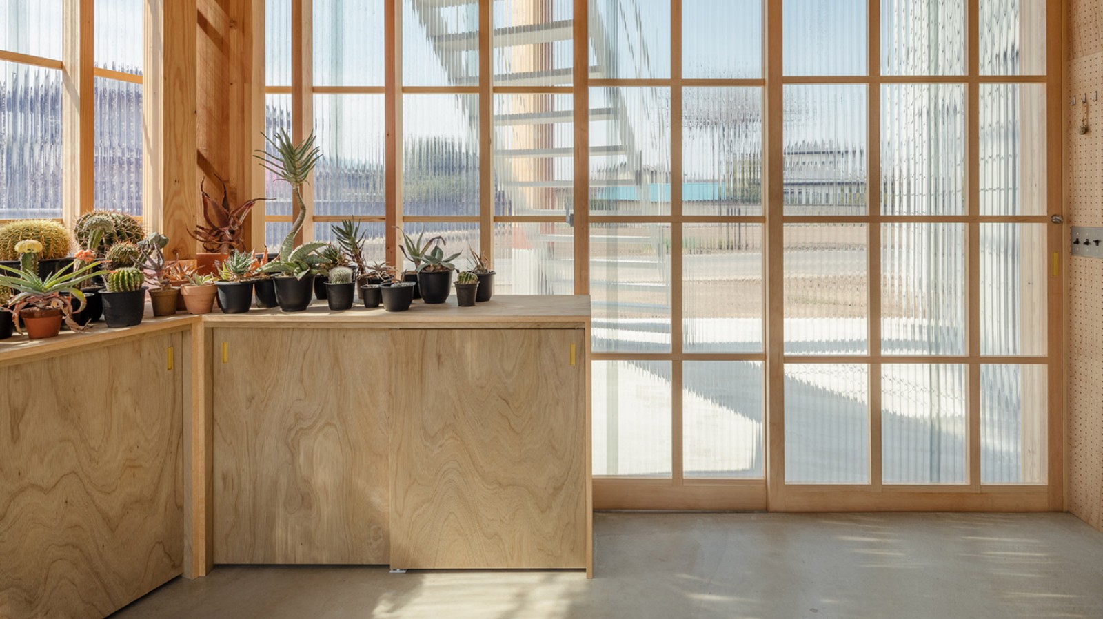 由于業(yè)主的愛好是培育仙人掌和多肉植物,建筑師創(chuàng)造了一個空間,為這些植物提供合適的生長條件。這個日光浴室同時也作為一樓的入口門廊,在其上層有一個與研究室相連的陽光溫室。