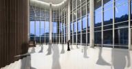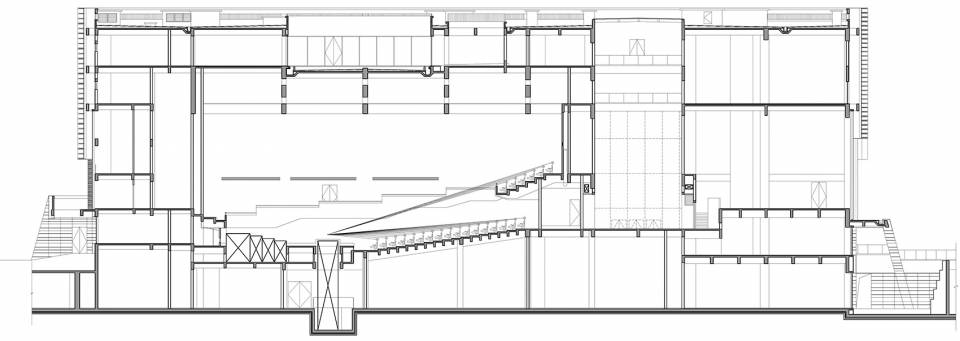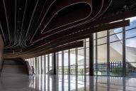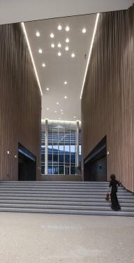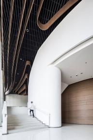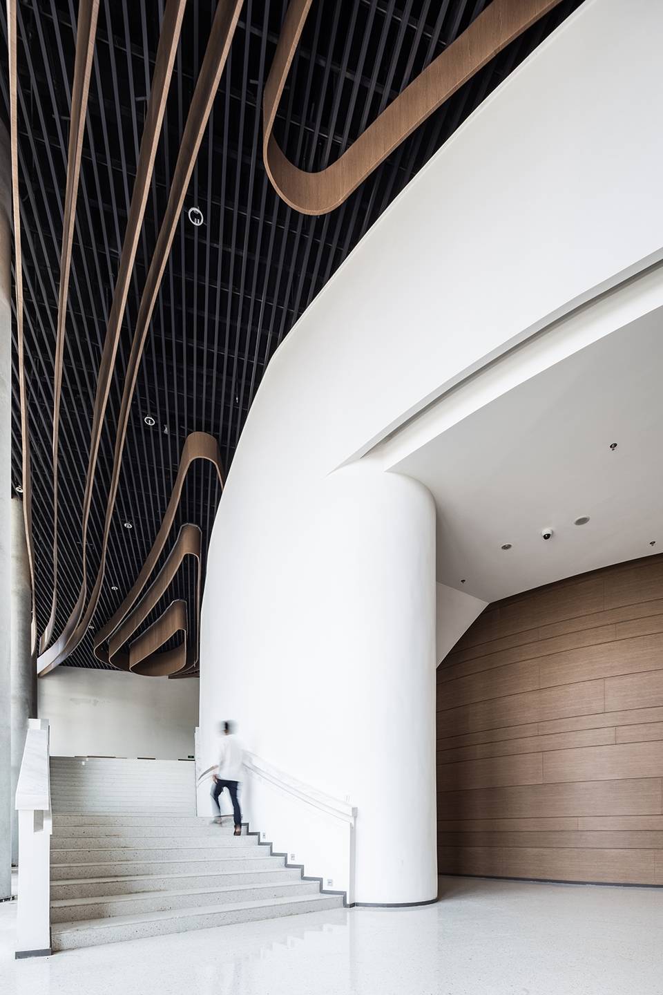 為了消解建筑的體量,建筑師從視覺上將建筑分為三段:從地面生長而起的臺基、中段開放的公共空間、以及上段連續(xù)的漂浮樂章。