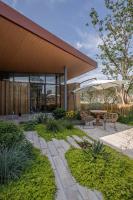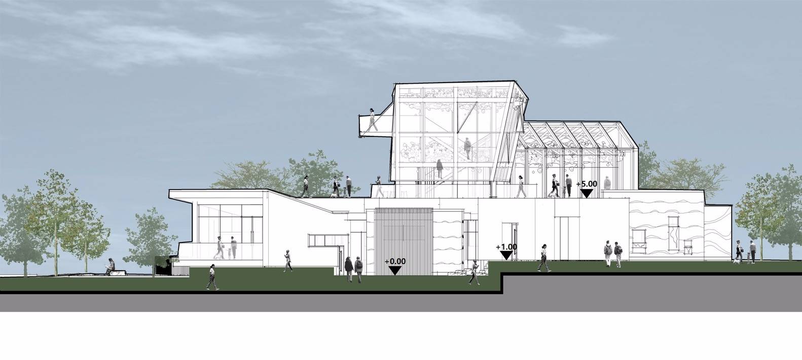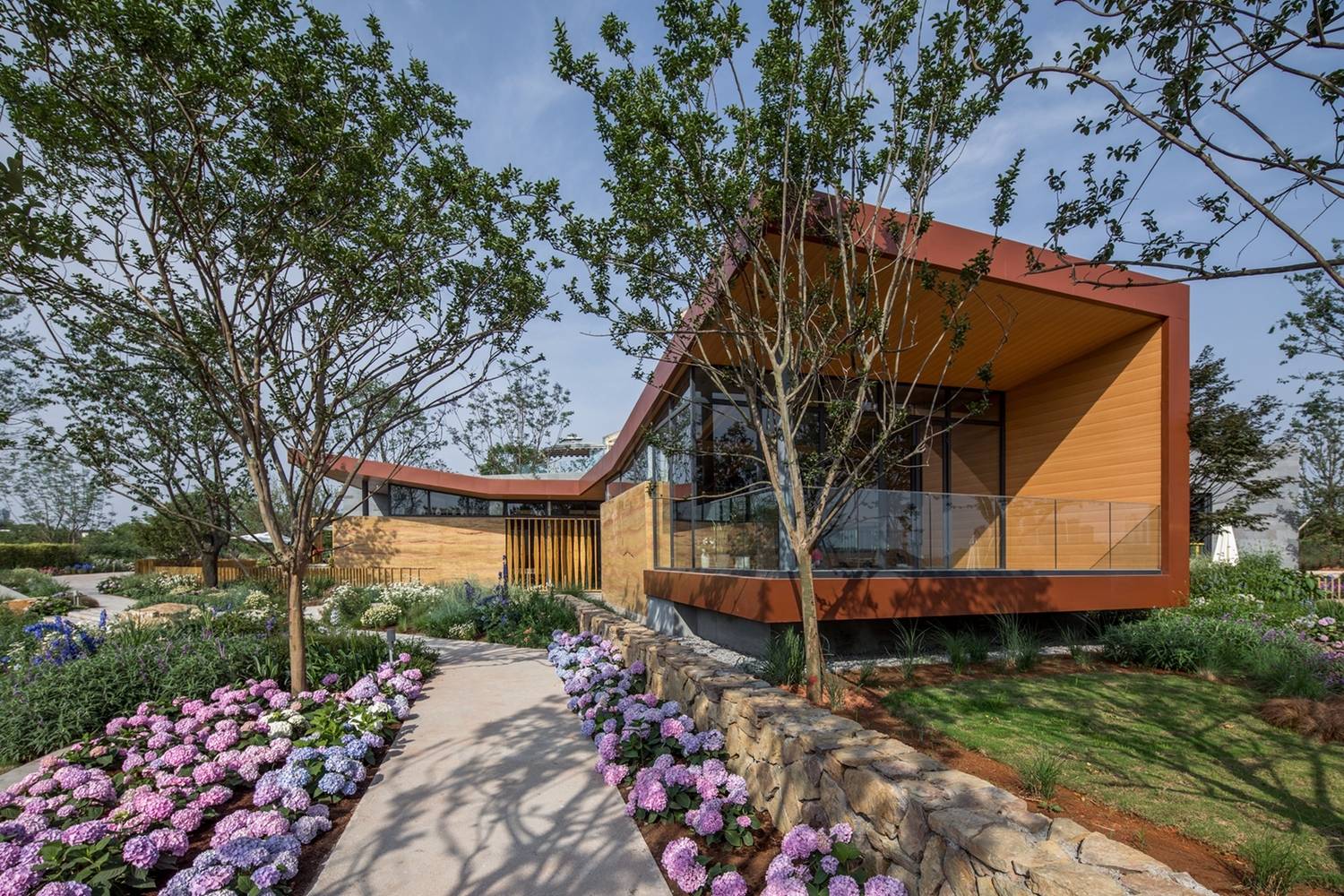 作為與花園區(qū)連接的場地,餐廳設(shè)計一開始就考慮與周邊環(huán)境的融合關(guān)系,使建筑與景觀相互滲透,使花園概念由景觀延伸到建筑。