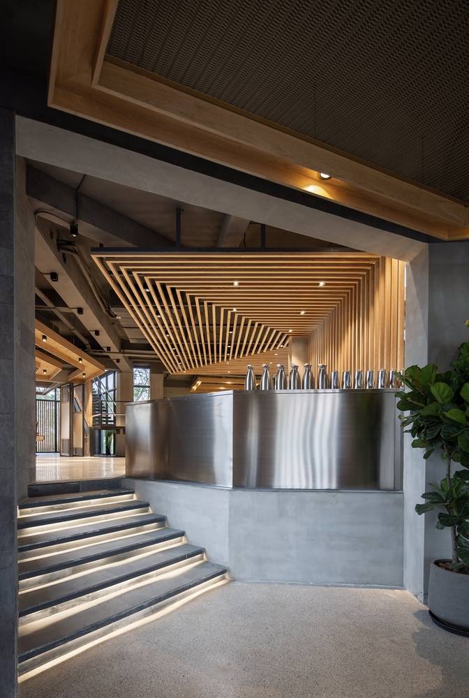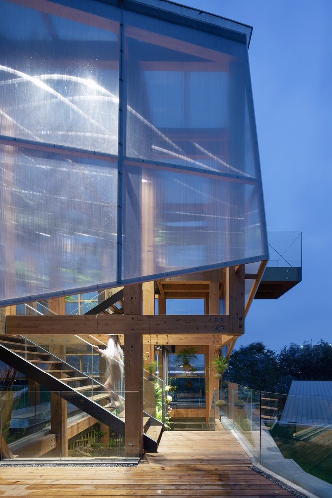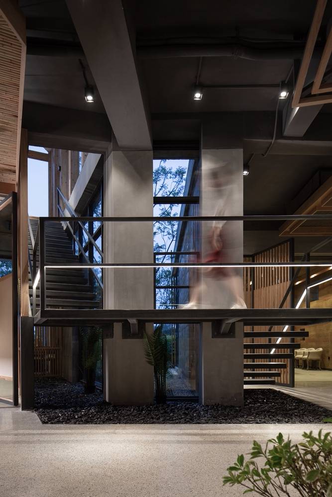 作為建筑上下功能的串聯(lián),加入中央溫室核心場所,上下貫通的空間,使空氣流通,陽光穿透進室內(nèi),打破封閉一層空間的沉悶感。