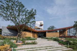 花房餐廳,位于成都“麓湖生態(tài)城”2400余畝湖域中央“麓客島“,麓客島作為城市級生態(tài)度假體驗島,分布有豐富多樣的戶外體驗類項目,通過建筑的定制化設(shè)計, 創(chuàng)造了同樣多樣的空間體驗, 這些具有一定實驗性的景觀建筑,成為了麓客島上特殊的景觀。