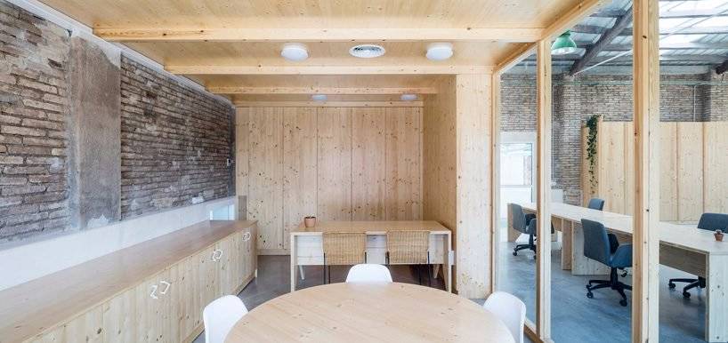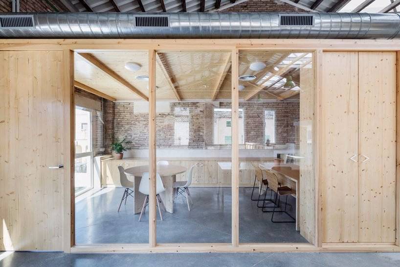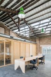 NUA arquitectures將車間中心處原有廢棄的倉庫改造為雙空間辦公樓,新增設窗戶和天窗,改善室內(nèi)照明條件和空間品質(zhì)。輕型設計結(jié)構(gòu)明確了辦公室的劃分和家具的擺放情況,整體的改造措施致力于與原有的建筑特征相互關(guān)聯(lián)。