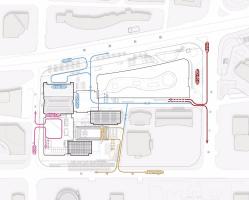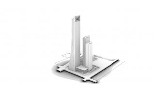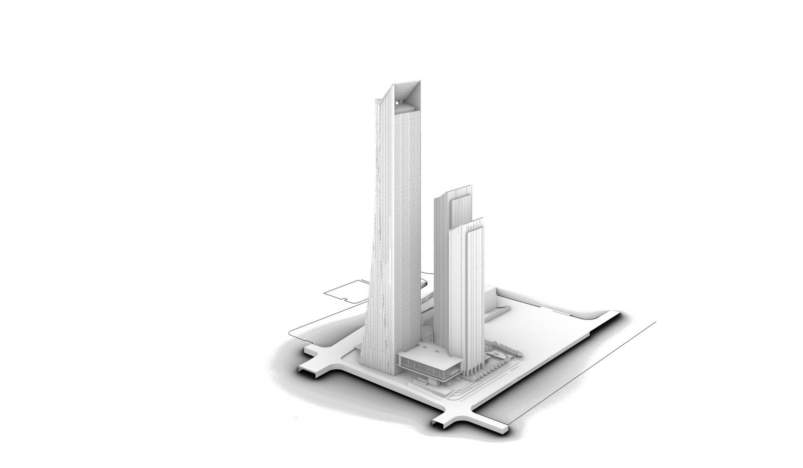 綜合塔樓與兩棟住宅塔樓錯動布局,呈“品”字形平面構(gòu)圖,將理性的空間流線規(guī)劃,運用于局限的基地之內(nèi),實現(xiàn)人行、車流、地鐵交通的順暢流動。