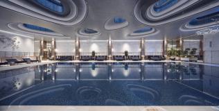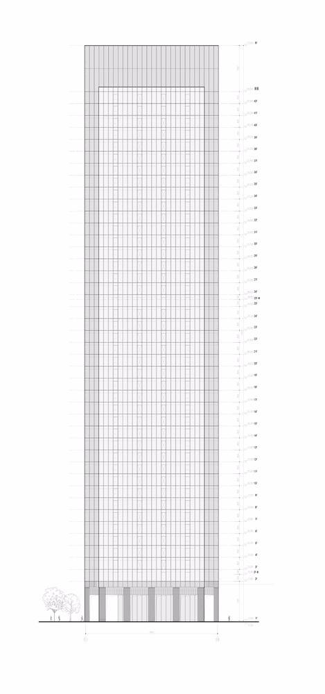裙房以架空12米的高度,將建筑底層輕盈落地,實現(xiàn)了均衡透明的城市通行感受,同時更極力營造多層次公區(qū)空間,拉開公共街面與居住領(lǐng)域的距離,強調(diào)層次清晰的休閑與居家體驗。