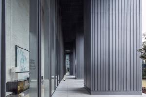 在住宅塔樓玻璃通風開啟方式上,使用滑動開啟的方式取代常規(guī)的平行外推窗的模式,極致每戶居住者與外界的直接感受。外觀上以玻璃及金屬鋁板材質(zhì)取代石材,勾勒出建筑輕盈而清晰的外輪廓,悄然的表達建筑師對青島城市意向的理解。