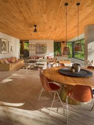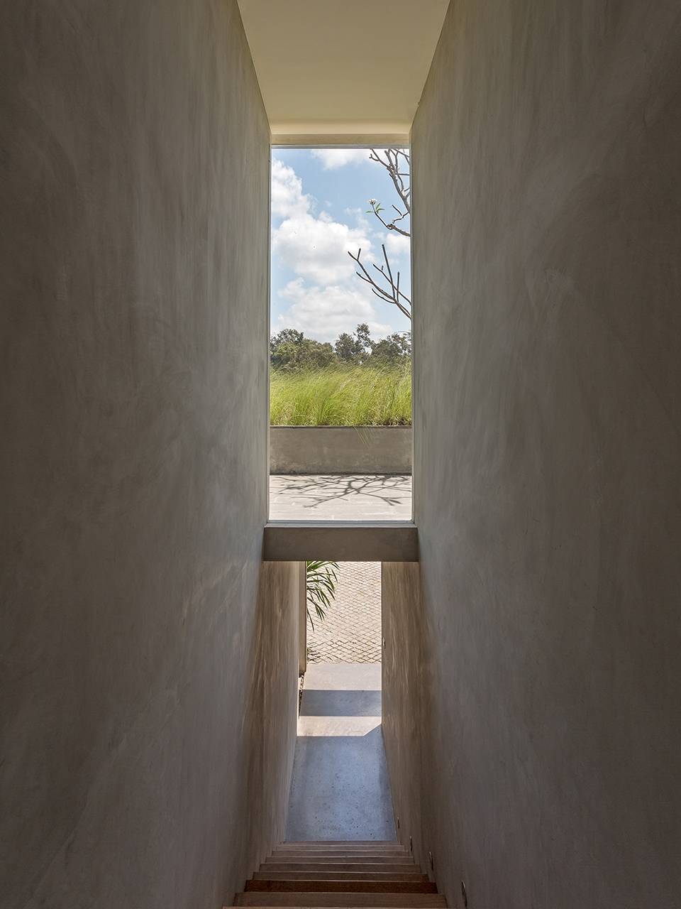 最終的建筑呈現(xiàn)出簡(jiǎn)潔而現(xiàn)代的觀感,但同時(shí)又有帶有一種有機(jī)而質(zhì)樸的氣息。建筑中使用的材料大部分是來(lái)自當(dāng)?shù)氐奶烊徊牧?,該做法不僅對(duì)本地供應(yīng)商和工匠提供了支持,還最大程度地減少了住宅的碳排放量。