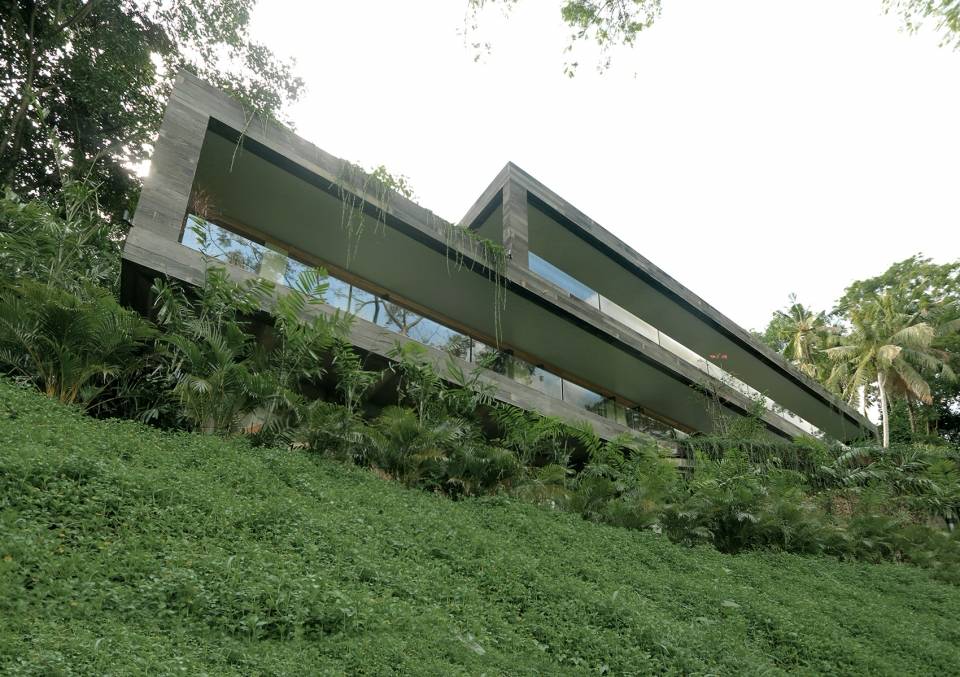 ▼別墅被建造在一個(gè)陡峭的場(chǎng)地上,能夠俯瞰下方茂密的樹(shù)林 ?DANIEL KOH