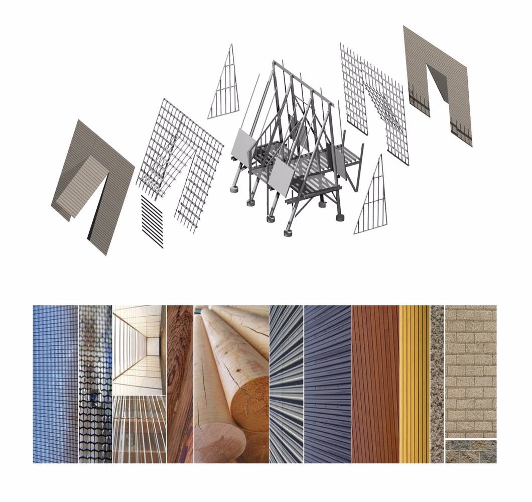 產(chǎn)品描述:斜搭的整體框架都是由與常見結(jié)構(gòu)相同的簡單桿件構(gòu)成,并與周圍并排豎立的樹木很和諧。作為一種成熟的產(chǎn)品,這些桿件都是環(huán)保的并且根據(jù)需求可達(dá)到45英尺(13.7米)的長度。為了將長桿與底座相連接,工人們會(huì)在鋼板上鋸出一個(gè)切口,并將桿件與之相結(jié)合、固定。