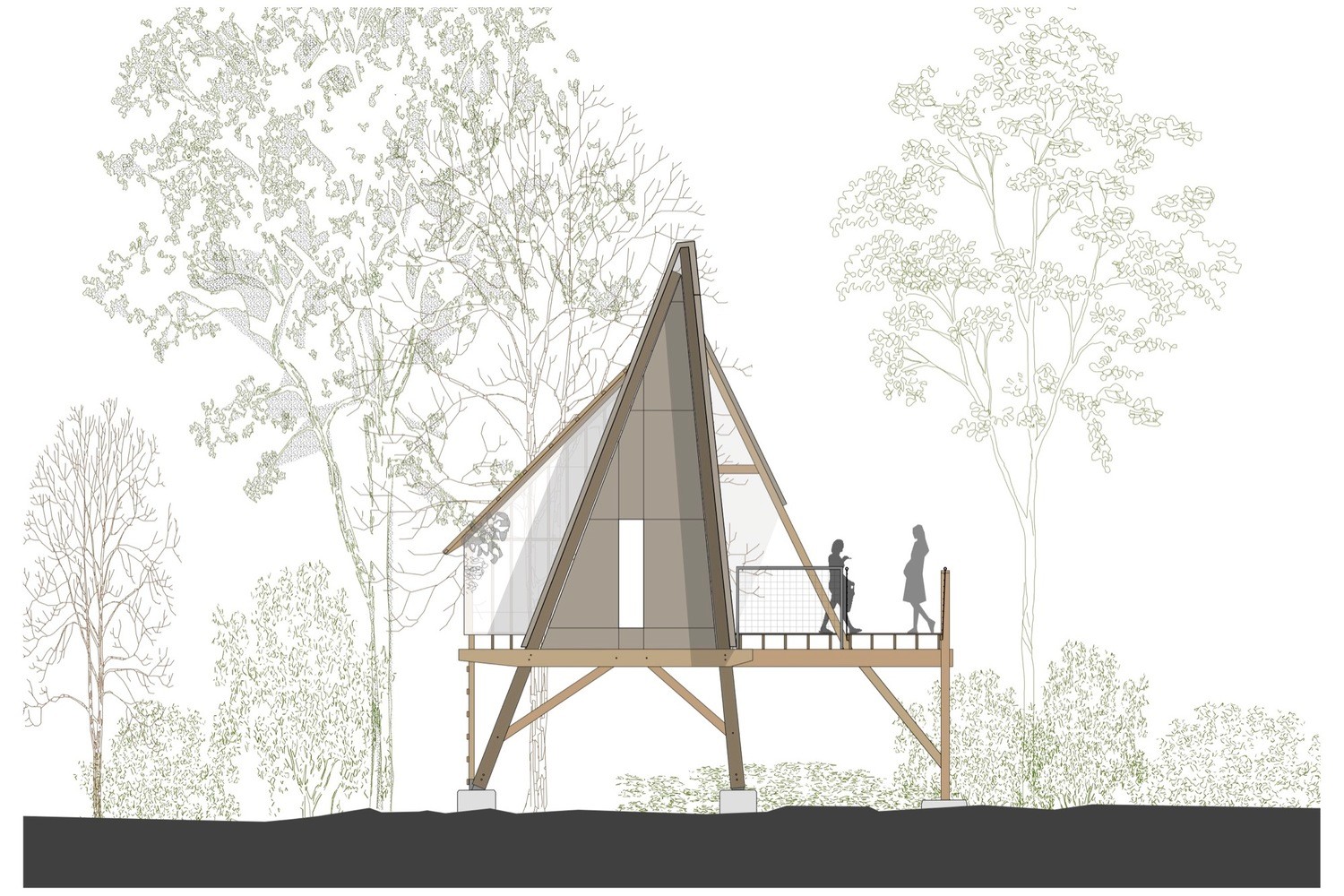 樹屋項(xiàng)目的建設(shè)在理事會(huì)的戰(zhàn)略計(jì)劃中,以對(duì)現(xiàn)有的營地物業(yè)進(jìn)行升級(jí)。2012年9月,作為多年房地產(chǎn)開發(fā)計(jì)劃的一部分,北卡羅來納州女童子軍選擇了由位于北卡羅來納州卡爾伯勒的Weinstein Friedlein Architects進(jìn)行樹屋單元概念設(shè)計(jì)和場地規(guī)劃。