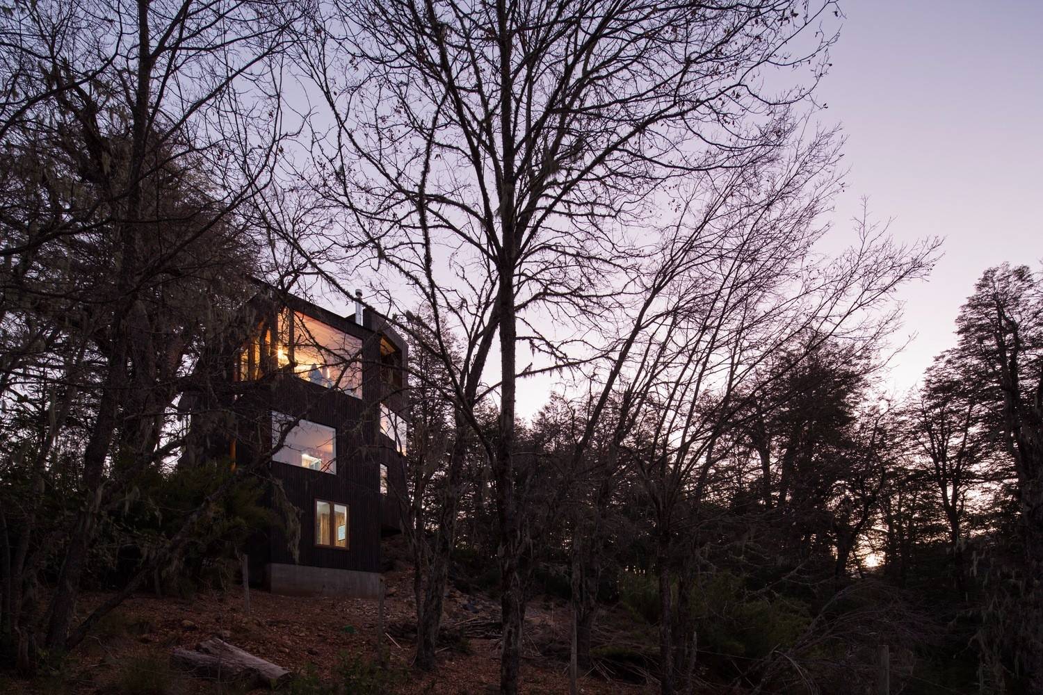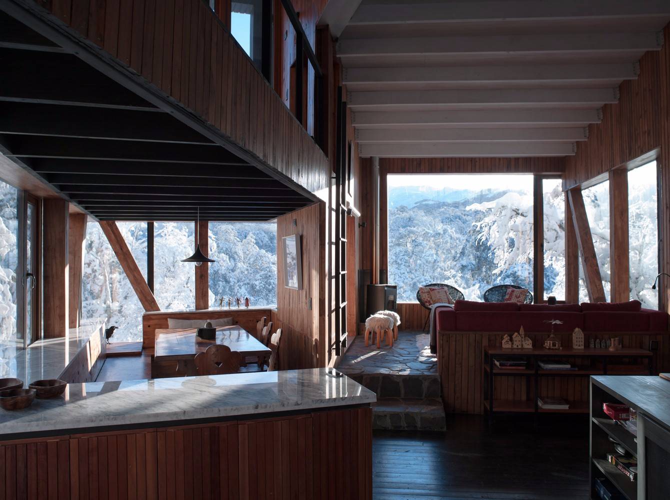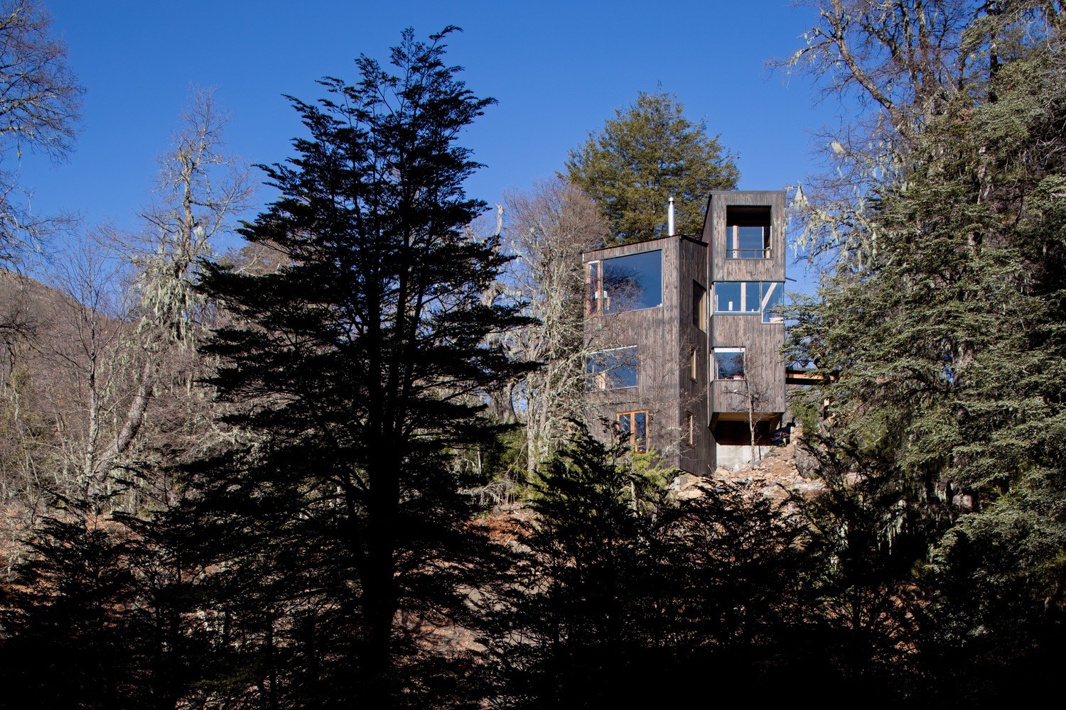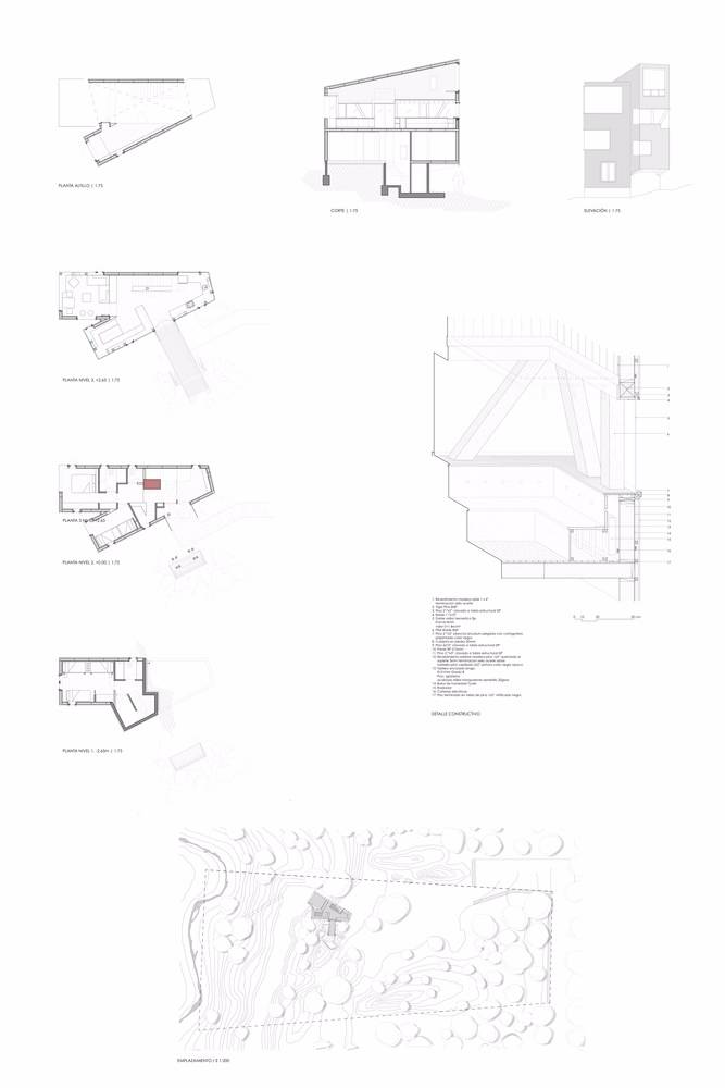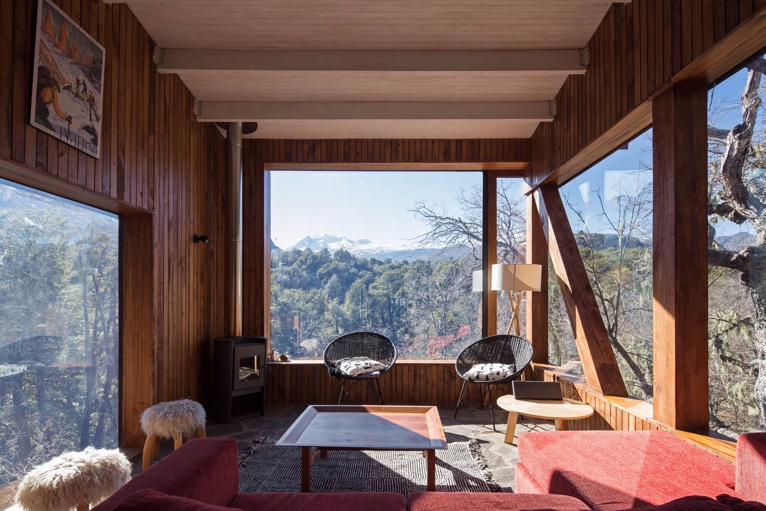 位于原生林地之中的拉達(dá)喀山小屋可以俯瞰壯美的內(nèi)華達(dá)斯德奇蘭火山體,該建筑根據(jù)場(chǎng)地特殊性精心設(shè)計(jì),集空間功能與優(yōu)良的熱效率于一身的項(xiàng)目。豎直的V字形住宅高聳于樹冠之上,目的在于沿著太陽的移動(dòng)路徑,朝北側(cè)和西側(cè)打開寬敞的開口。