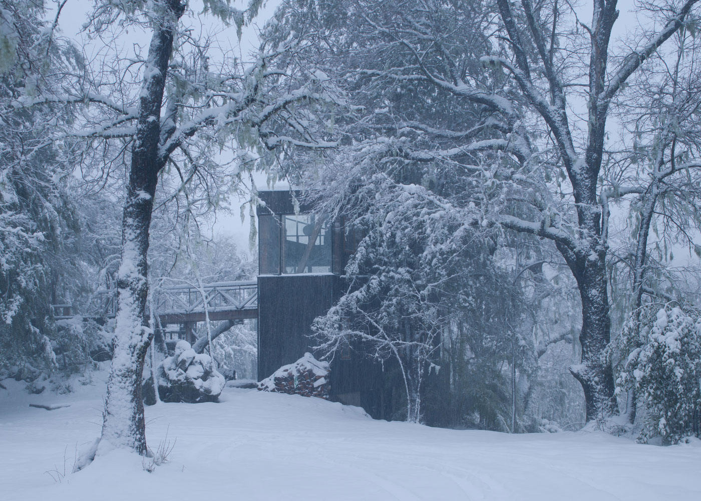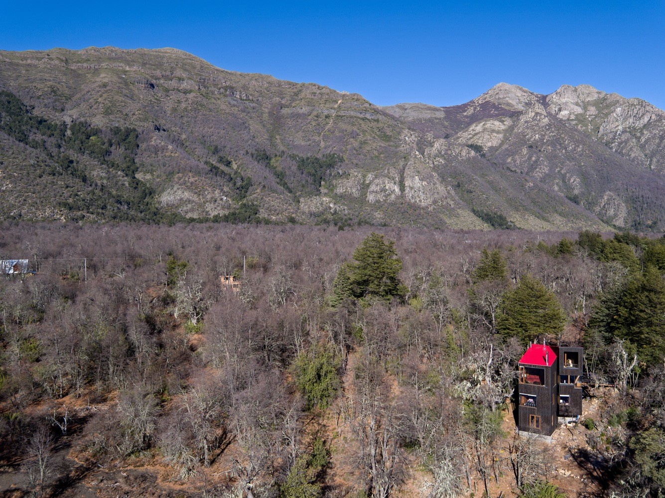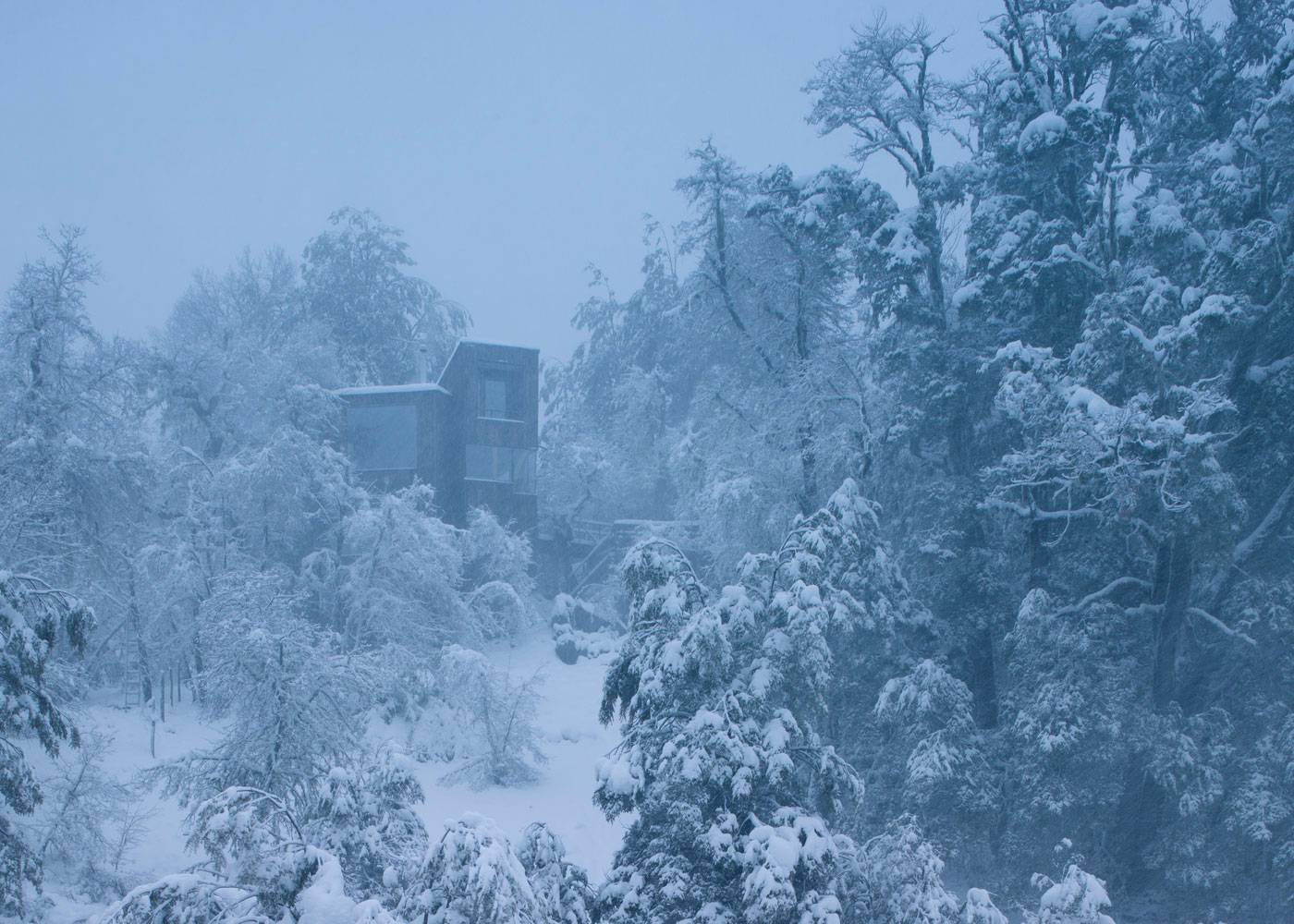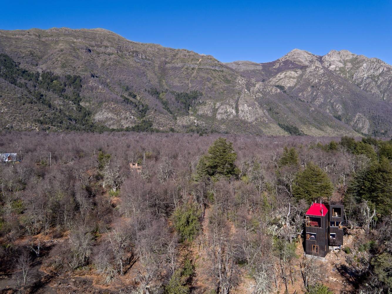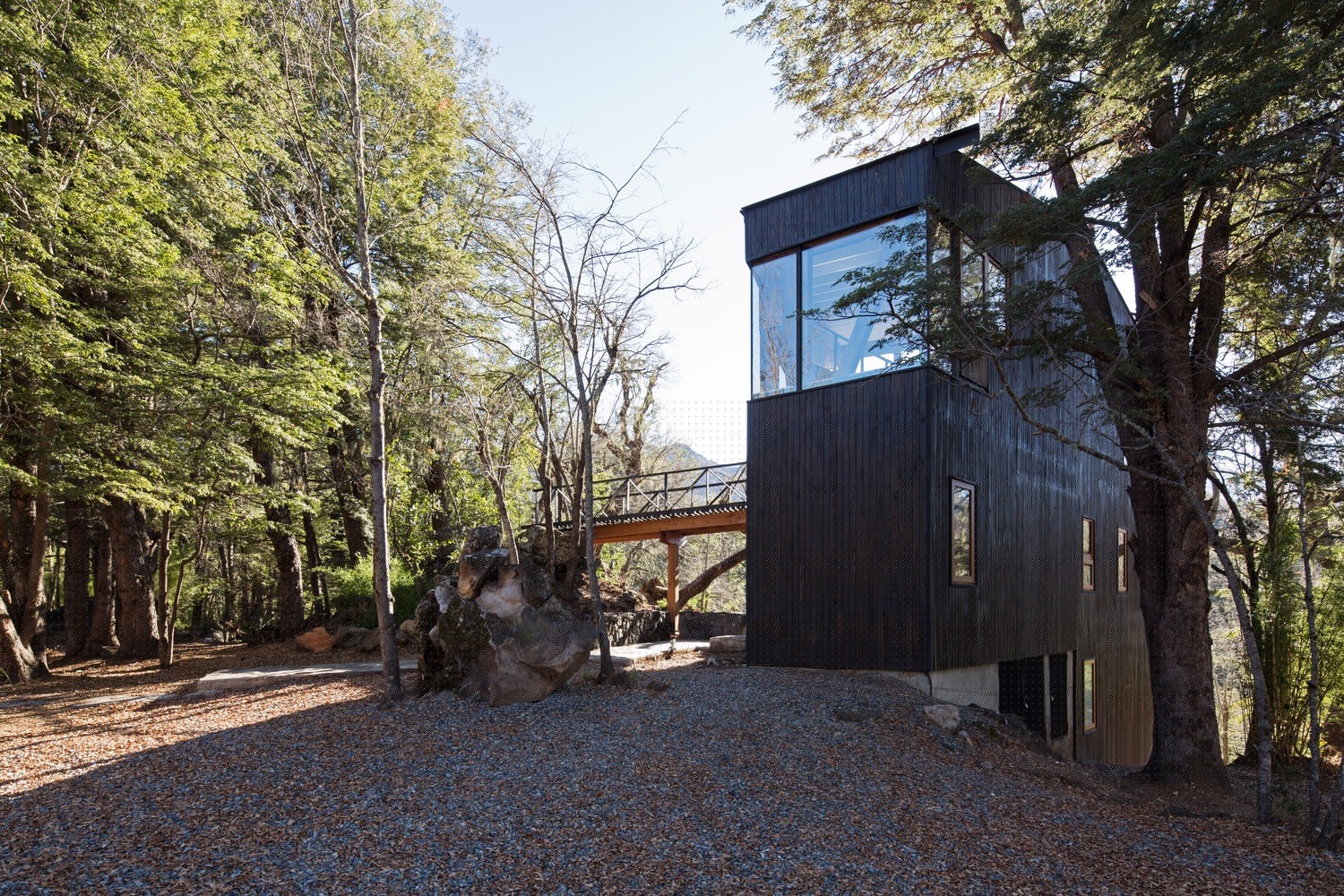 位于原生林地之中的拉達(dá)喀山小屋可以俯瞰壯美的內(nèi)華達(dá)斯德奇蘭火山體,該建筑根據(jù)場(chǎng)地特殊性精心設(shè)計(jì),集空間功能與優(yōu)良的熱效率于一身的項(xiàng)目。豎直的V字形住宅高聳于樹冠之上,目的在于沿著太陽的移動(dòng)路徑,朝北側(cè)和西側(cè)打開寬敞的開口。