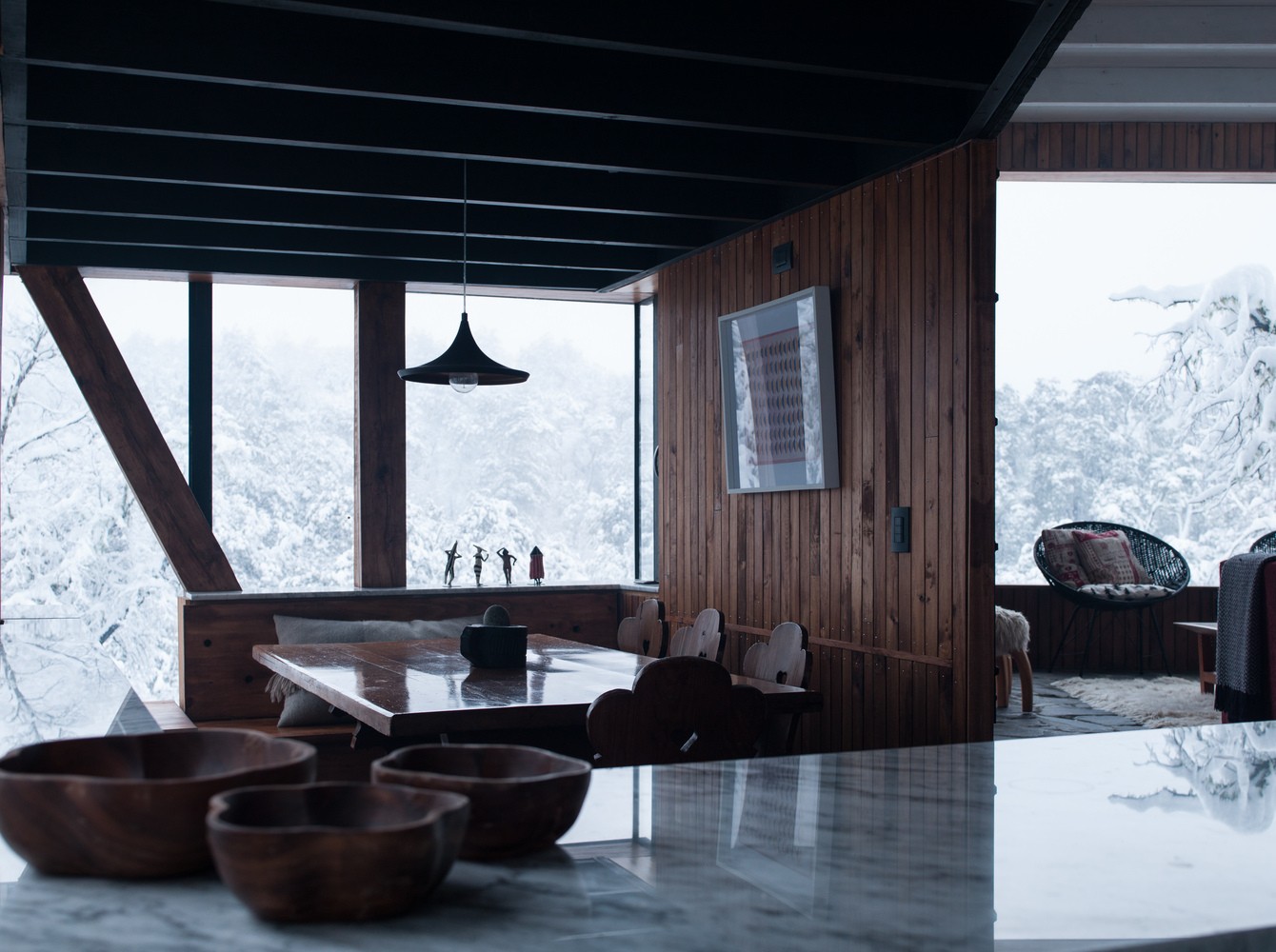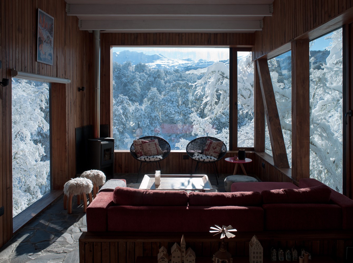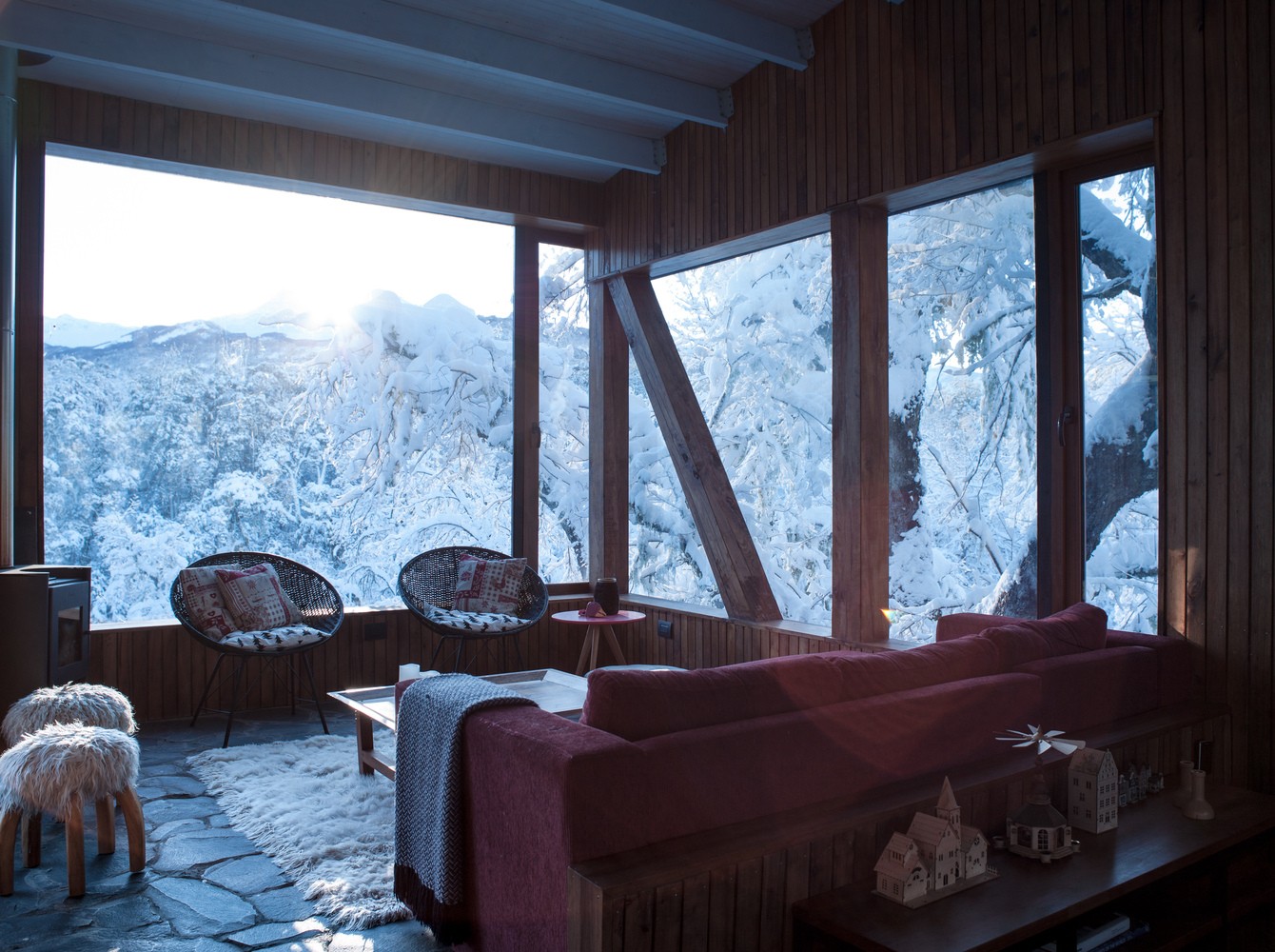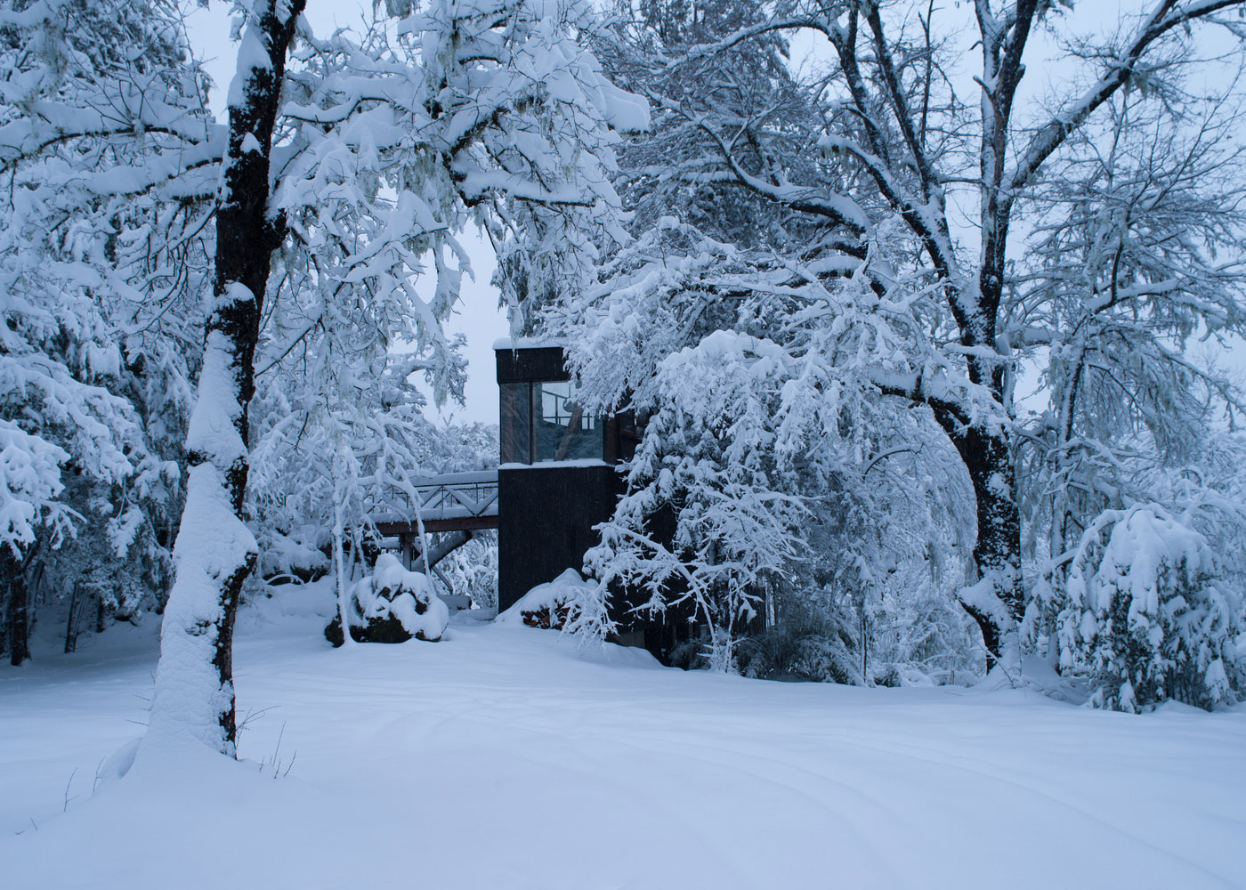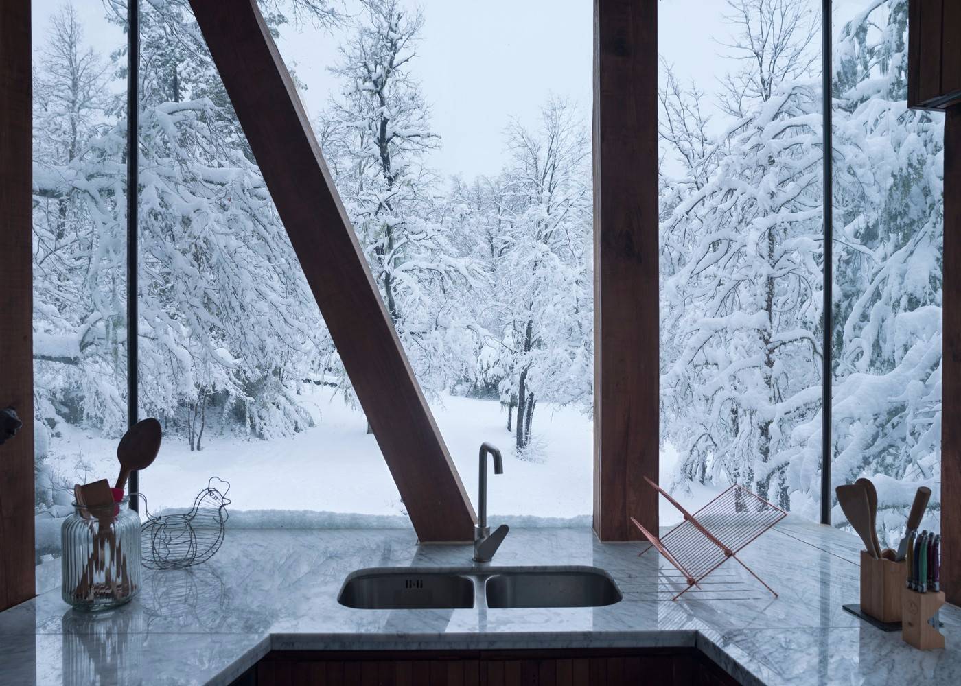 位于原生林地之中的拉達(dá)喀山小屋可以俯瞰壯美的內(nèi)華達(dá)斯德奇蘭火山體,該建筑根據(jù)場(chǎng)地特殊性精心設(shè)計(jì),集空間功能與優(yōu)良的熱效率于一身的項(xiàng)目。豎直的V字形住宅高聳于樹冠之上,目的在于沿著太陽的移動(dòng)路徑,朝北側(cè)和西側(cè)打開寬敞的開口。