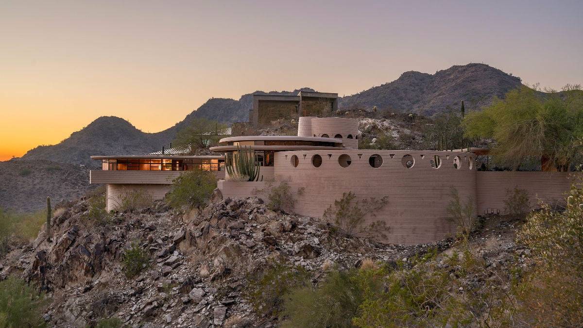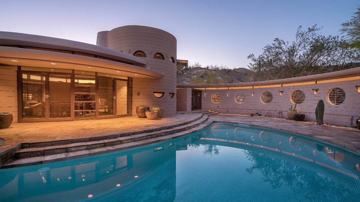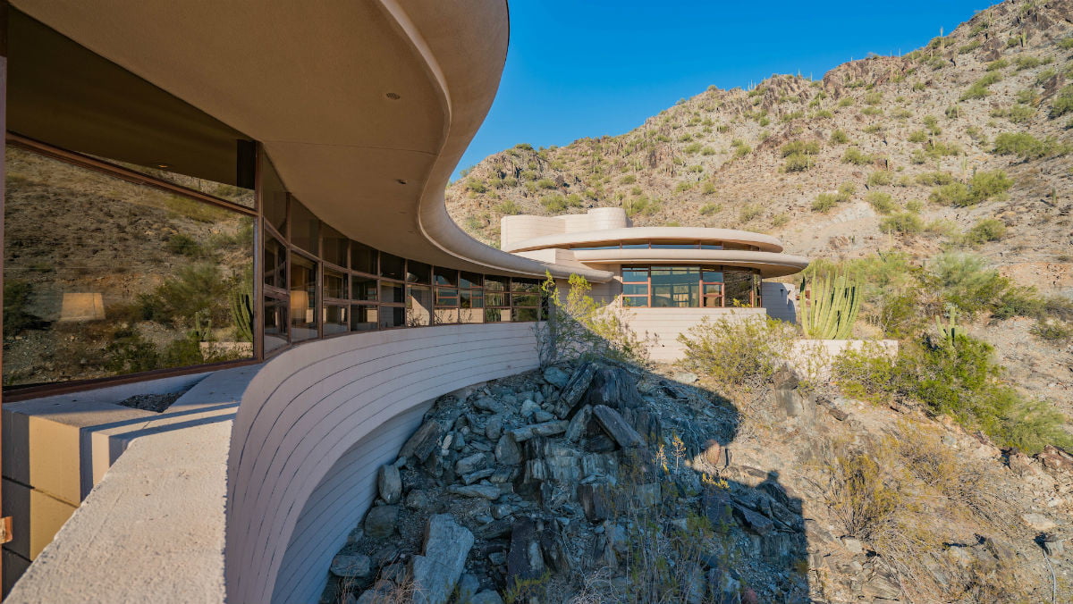 這座位于亞利桑那州鳳凰城棕櫚峽谷(Palm Canyon)的住宅名為“Norman Lykes House”,是美國著名建筑大師弗蘭克·勞埃德·賴特(Frank Lloyd Wright)生前設(shè)計的最后一個住宅項目,也是其所設(shè)計的14處標(biāo)志性圓形住宅之一。