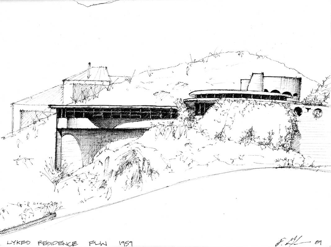 賴特于1959年開始Norman Lykes House的設(shè)計,在他過世后,這棟房屋在他學(xué)生John Rattenbury的主持之下得以建成。而現(xiàn)業(yè)主Linda Melton是在1994年買下這棟房屋,并在入手后聘請建筑師Francis Rattenbury對室內(nèi)進(jìn)行翻新。