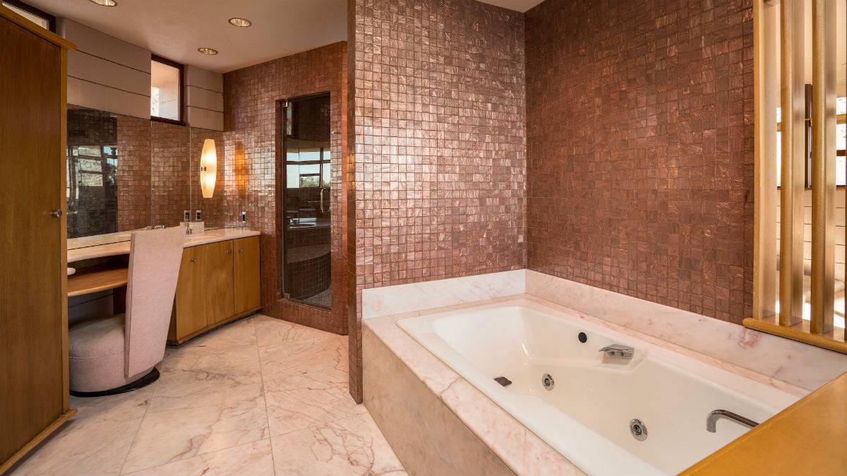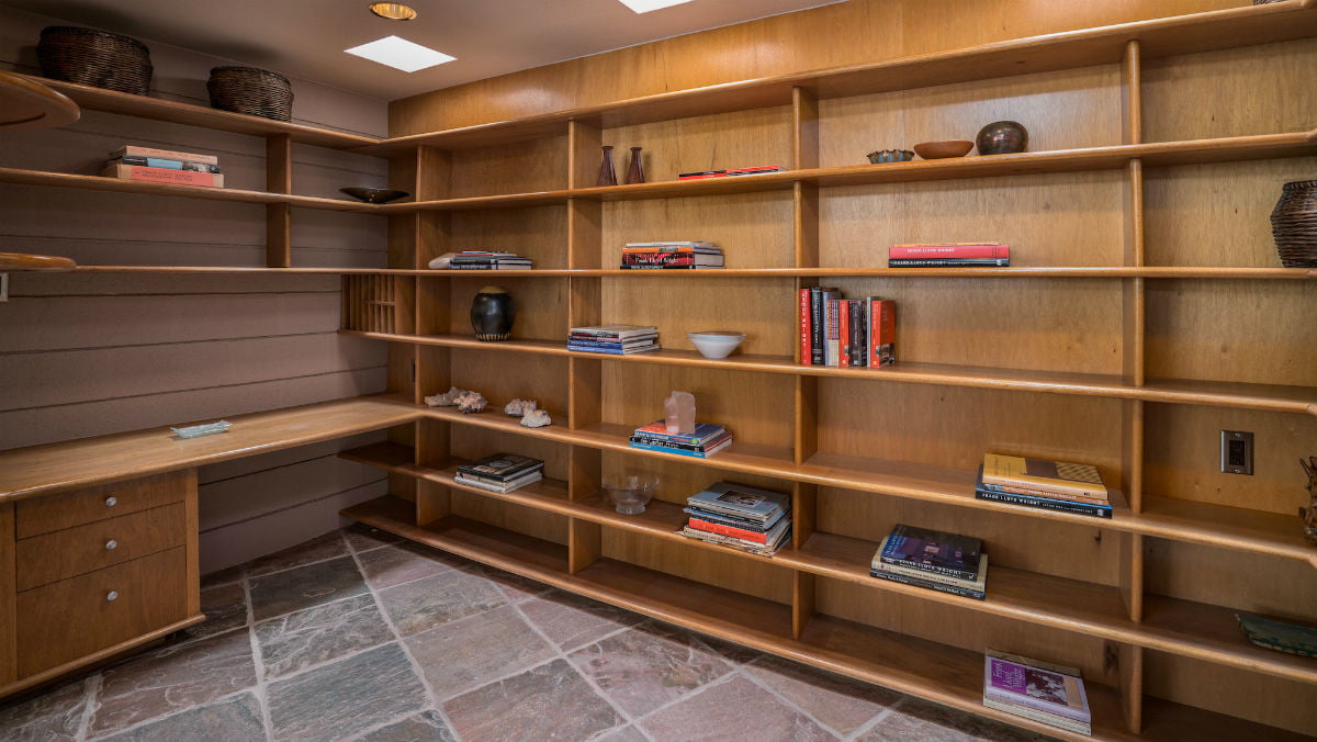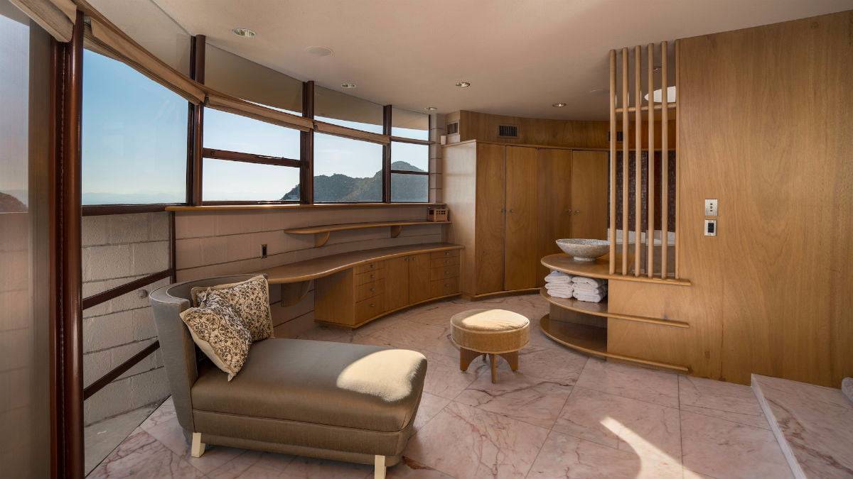 Norman Lykes House內(nèi)部面積為287平方米,雙層空間包含3間臥房、3間浴室和寬敞的客廳,大部分房間房都可以欣賞到棕櫚峽谷的壯觀美景。這是1994年時Rattenbury由原本的5間臥房改造而來,其中主臥房被放大,而一間工作室被改造成媒體室。該房產(chǎn)還附帶一座新月形的游泳池,曲面的內(nèi)牆上鑲有嵌入式壁柜,并附帶定制的固定式家具。(文字參考:www.luxurywatcher.com)