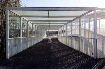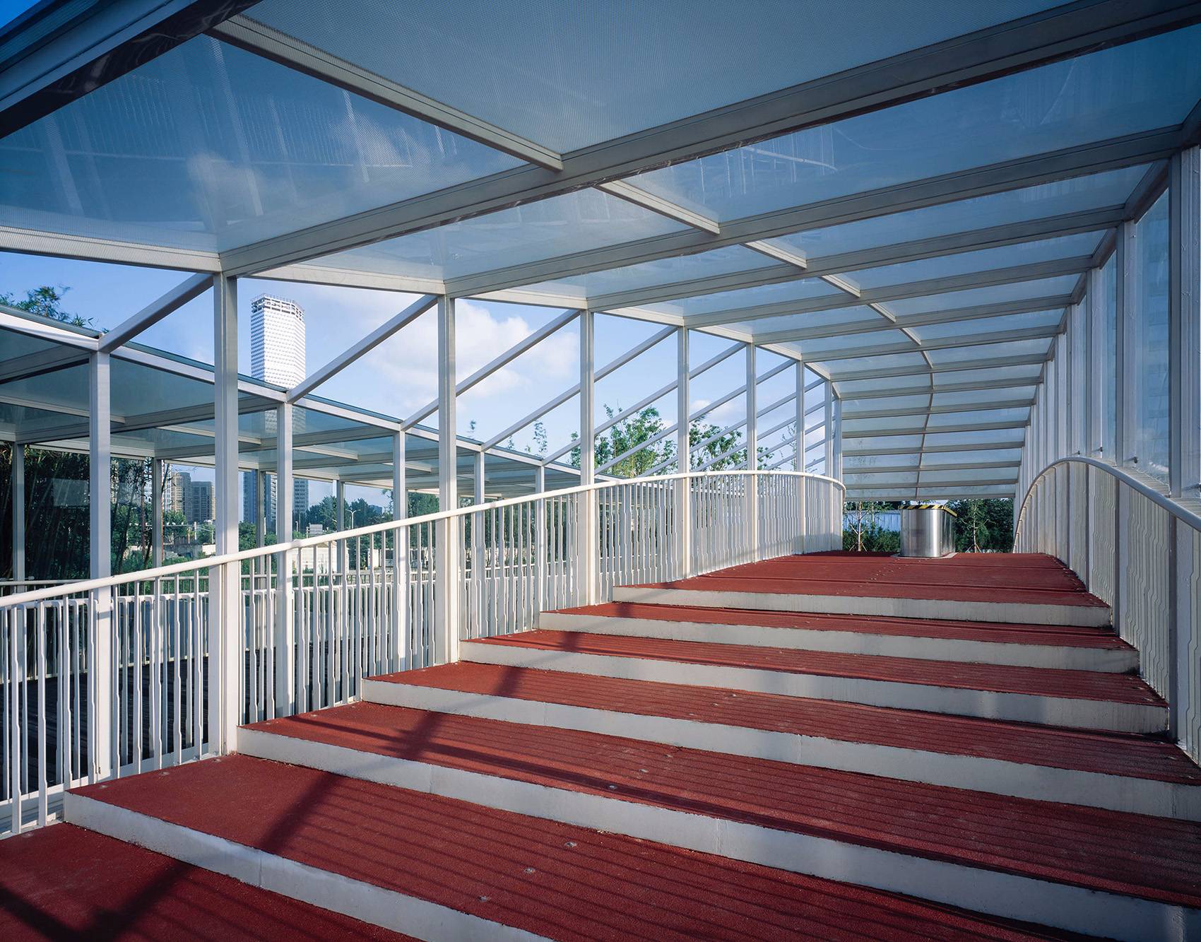 ▼兩個(gè)橋梁的外側(cè)加設(shè)有縫隙通風(fēng)的大玻璃