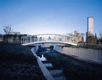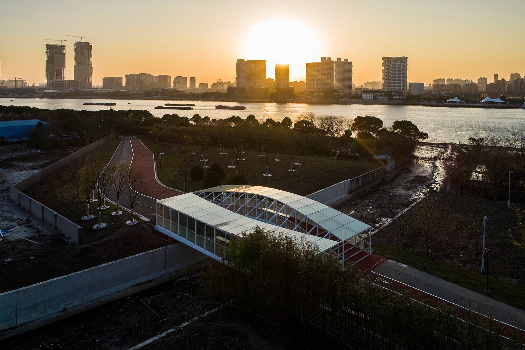 倪家浜橋(又名望止橋)是上海浦東東岸貫通項(xiàng)目中的一座人行橋,也是高目設(shè)計(jì)的其中三座人行橋之一。