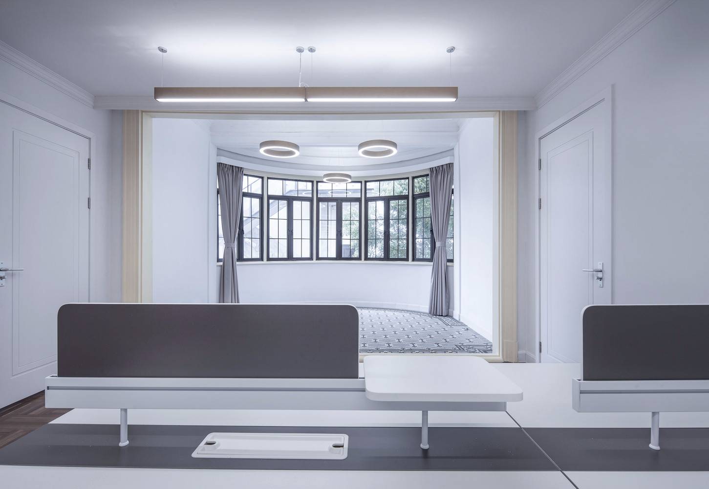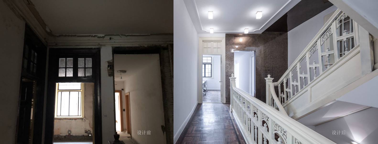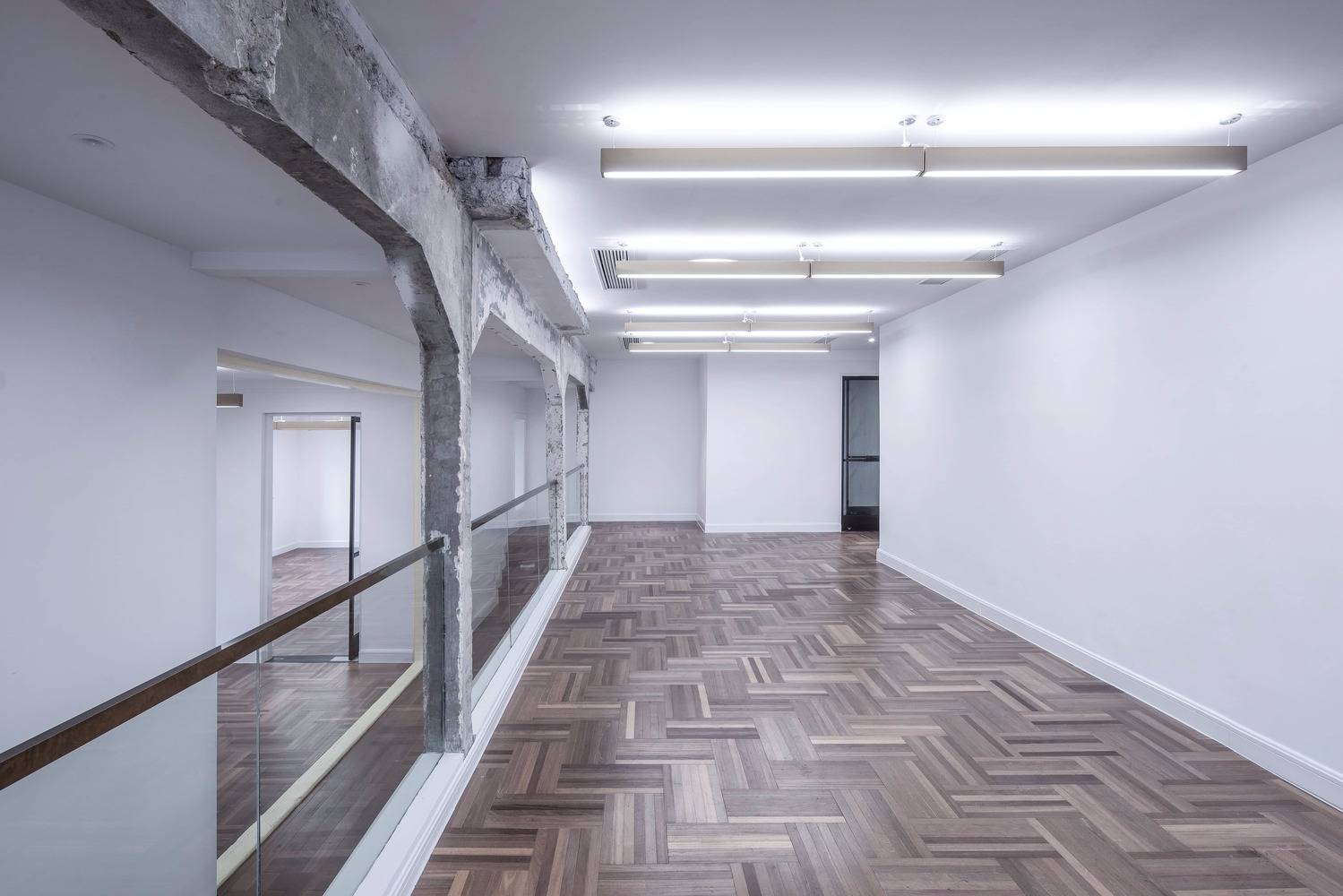 在二層的公共空間,在把多余的石膏板隔墻及吊頂拔除后,這棟百年歷史建筑的基礎構造得以窺見,把這個混凝土框架按照它不加修飾的樣子裸露在外面,造成一種時間和空間的對立,以一種歷史的疏離感提醒著往來其中的人,時間如斯流逝,歷史揭示真相,而建筑也許和人類的想象一樣不朽。