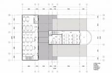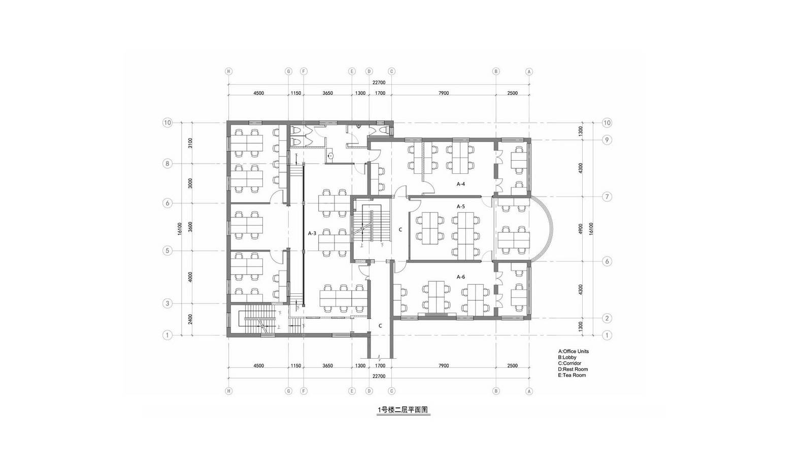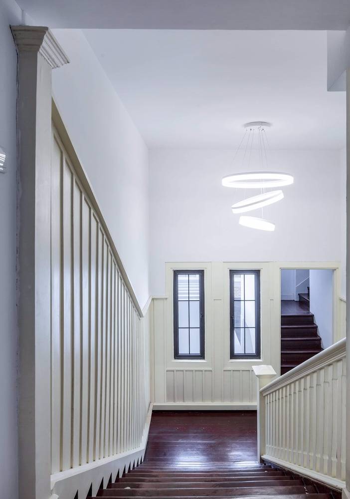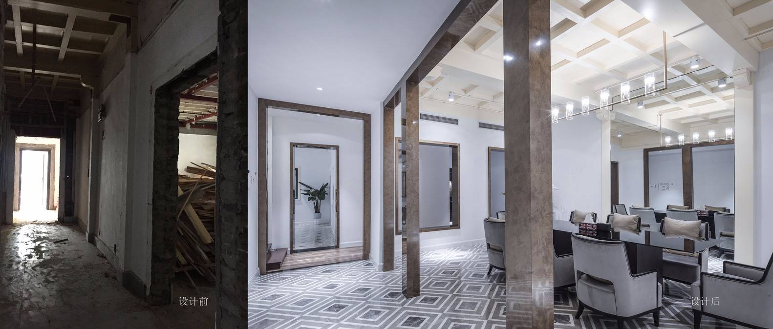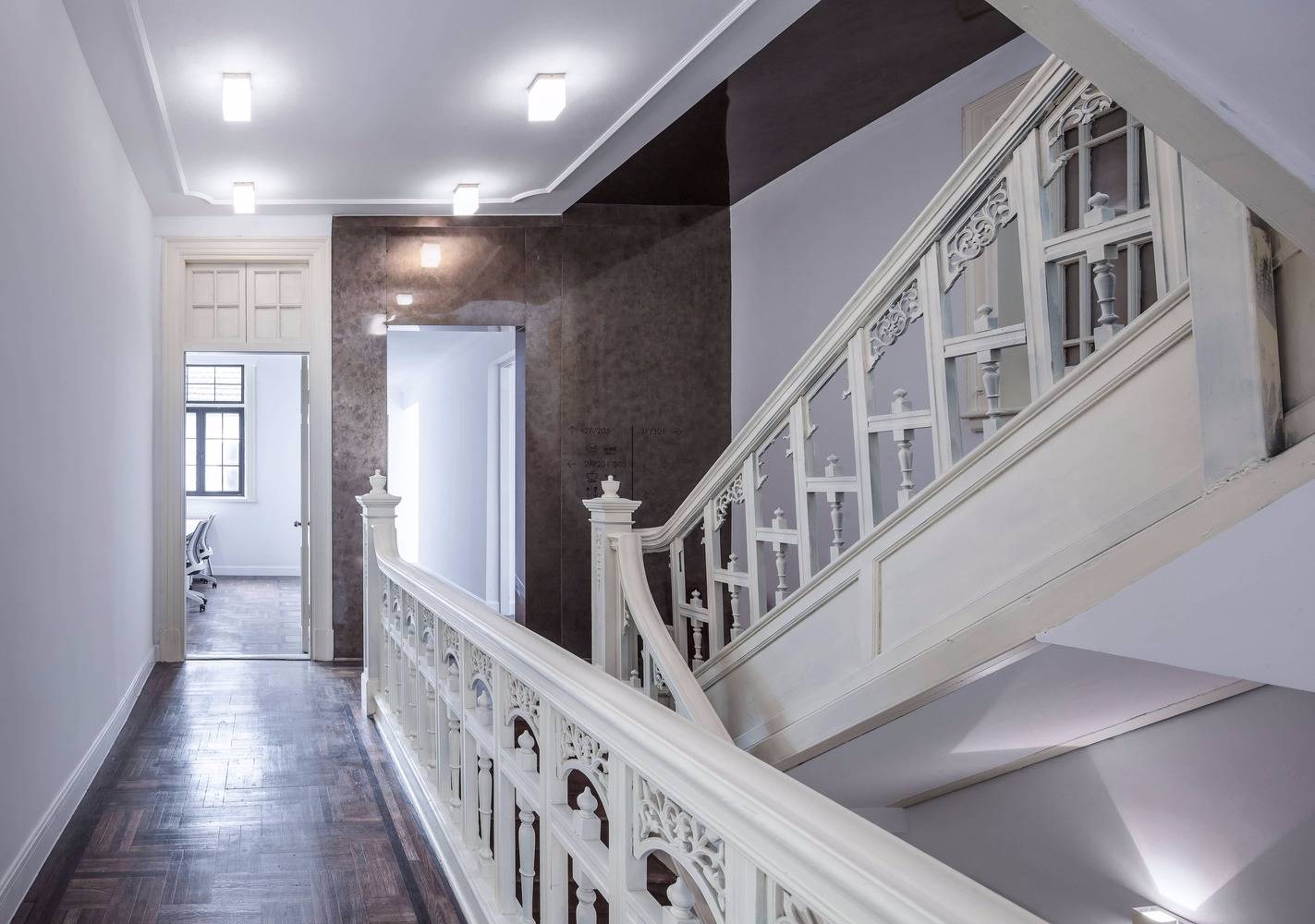 在二層的公共空間,在把多余的石膏板隔墻及吊頂拔除后,這棟百年歷史建筑的基礎構造得以窺見,把這個混凝土框架按照它不加修飾的樣子裸露在外面,造成一種時間和空間的對立,以一種歷史的疏離感提醒著往來其中的人,時間如斯流逝,歷史揭示真相,而建筑也許和人類的想象一樣不朽。